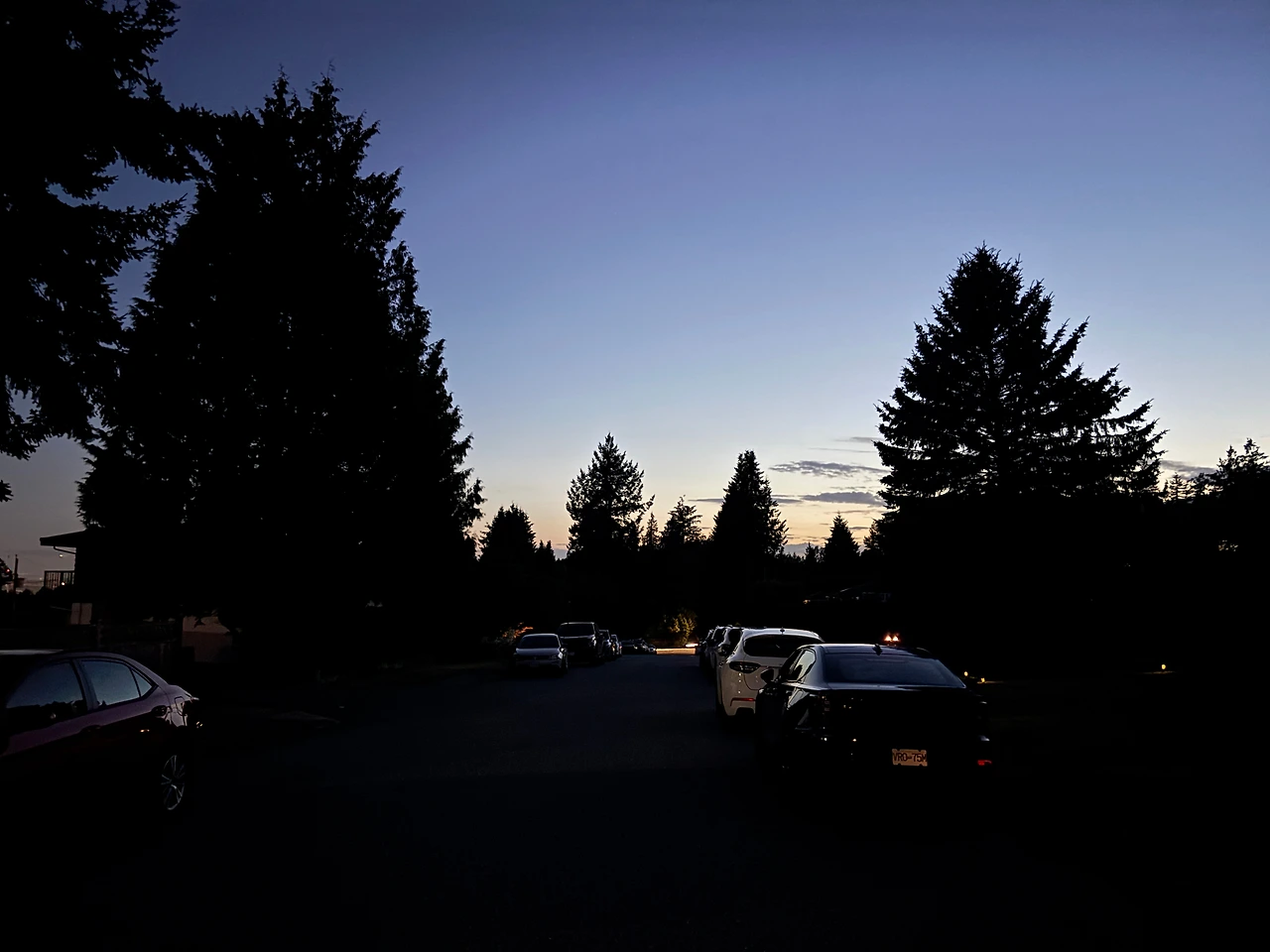 캐나다의 밤은 10시가 넘어서야 어둑해지기 시작한다. 숙소 앞에서 산책을 하던 중, 어느새 검어진 나무들과 푸르스름한 하늘이 눈에 들어왔다. 밤공기가 내려앉은 우리 숙소는 반지하에 가까웠다. 우리 숙소를 보고 아빠가 기생충이냐며 농담을 던지기도 했지만, 키친도 넓고 햇볕도 잘 들어왔다. 물론 커튼이 말썽여 한참을 헤매기도 했지만, 아빠는 뚝딱 커튼을 고쳐냈다. 커튼은 밤을 드리우게 했고, 뒤틀린 시차에 적응하기 위해서는 잠이 오지 않아도 눈을 감아야 했다. 나는 아빠와 침대에 나란히 누워 낯선 밤을 맞이했다. 아빠의 대각선 취침과 코골이, 그리고 시끄러운 기지개에도 깊은 잠을 잘 수 있기를.