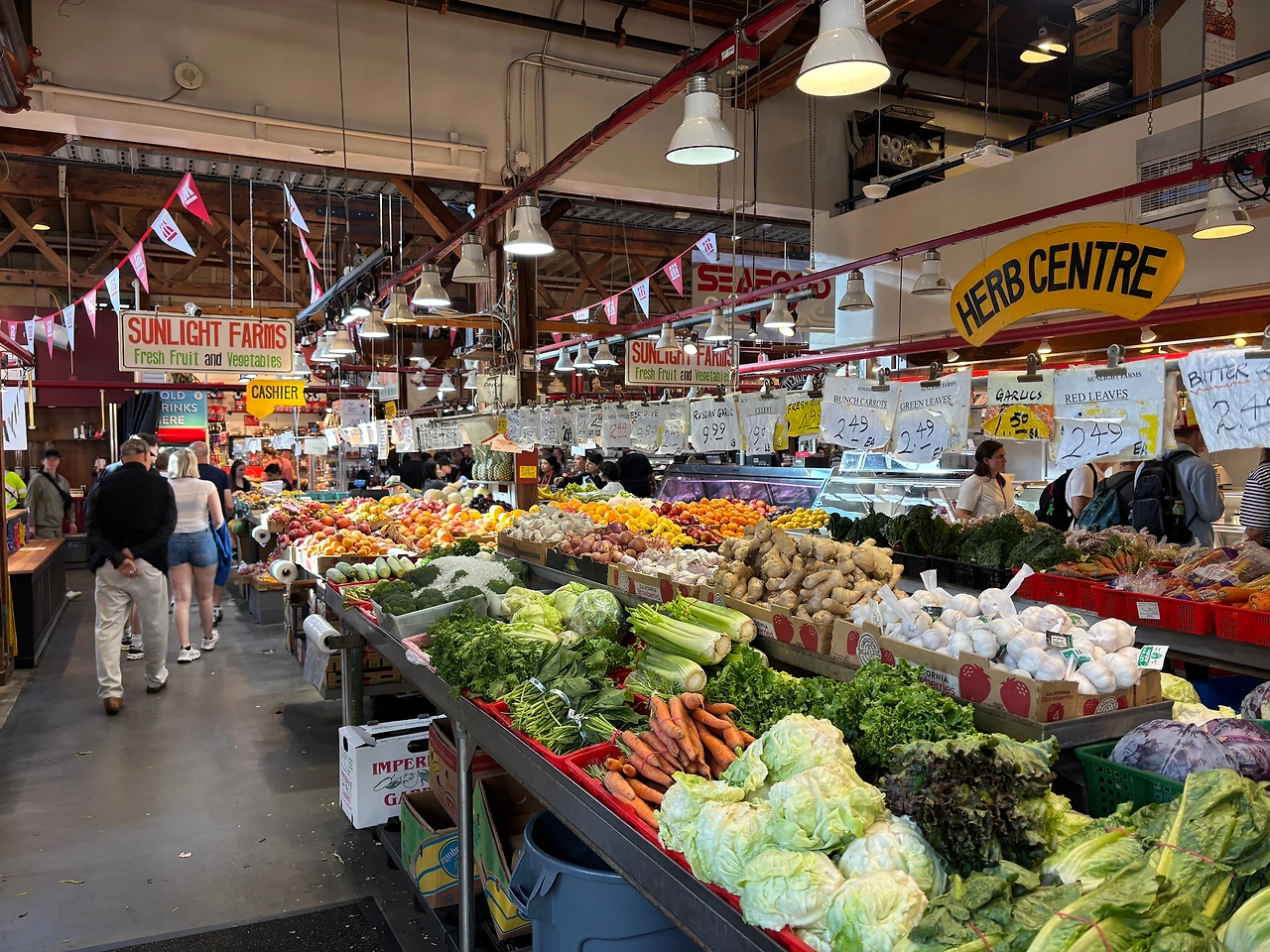 우려했던 대로 우리는 그랜빌 아일랜드로 내려가는 계단을 찾지 못했다. 반대편까지 다리를 다 걸어내서야 그랜빌 아일랜드로 들어가는 길이 보였다. 섬으로 들어가는 입구에 다다르자 아름다운 빨간 꽃이 햇볕에 녹고 있었고, 긴 수풀머리를 치렁거리며 키 큰 나무가 그늘을 만들고 있었다. 나는 정원에서 발걸음을 겨우 돌리고는, 작년에 덴마크에서 본 것 같았던 실내 마켓에 들어가보았다.