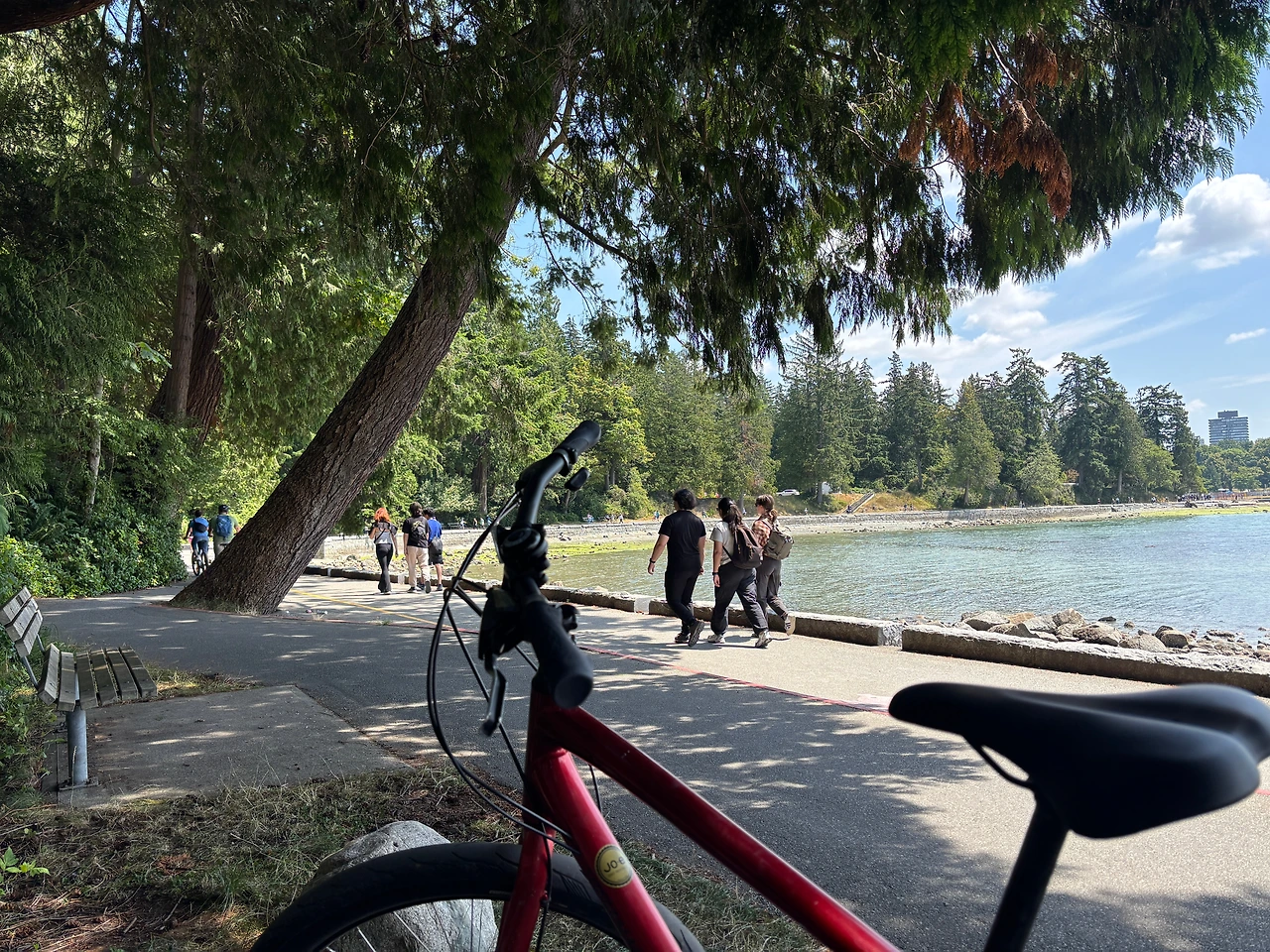 자전거를 타고 다시 바닷길을 따라 달린다. 선선한 바람이 얼굴을 스치고, 곧이어 거대한 유람선이 눈앞에 나타나기 시작한다. 와, 스탠리 파크에서 자전거를 타는 기분이란. 그때, 누나에게서 카톡이 왔다. 우리가 길을 잘못 들었다고. 알고 보니 여기는 스탠리 파크가 아니었다. 스탠리 파크 반대쪽인지도 모르고 신나게 달리고 있었던 것이었다. 왔던 길을 되돌아 진짜 스탠리파크 입구에서 네 명이 다시 모이는 데는 시간이 꽤 걸렸다.