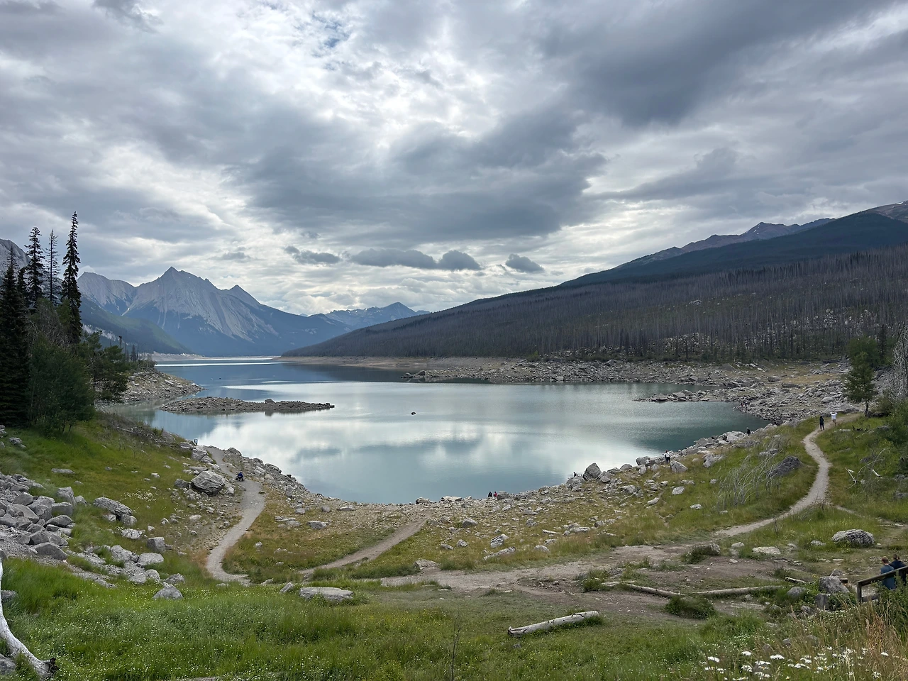 호수 너머엔 원래 푸르른 숲이 울창해야 했지만, 산불은 우거진 숲을 따가운 바늘처럼 바꿔버렸다. 그럼에도 불구하고 재스퍼의 아름다움은 여전했다. 제아무리 산불이 재스퍼의 나무들을 집어삼켜도 아름다움은 태워내지 못했나 보다.