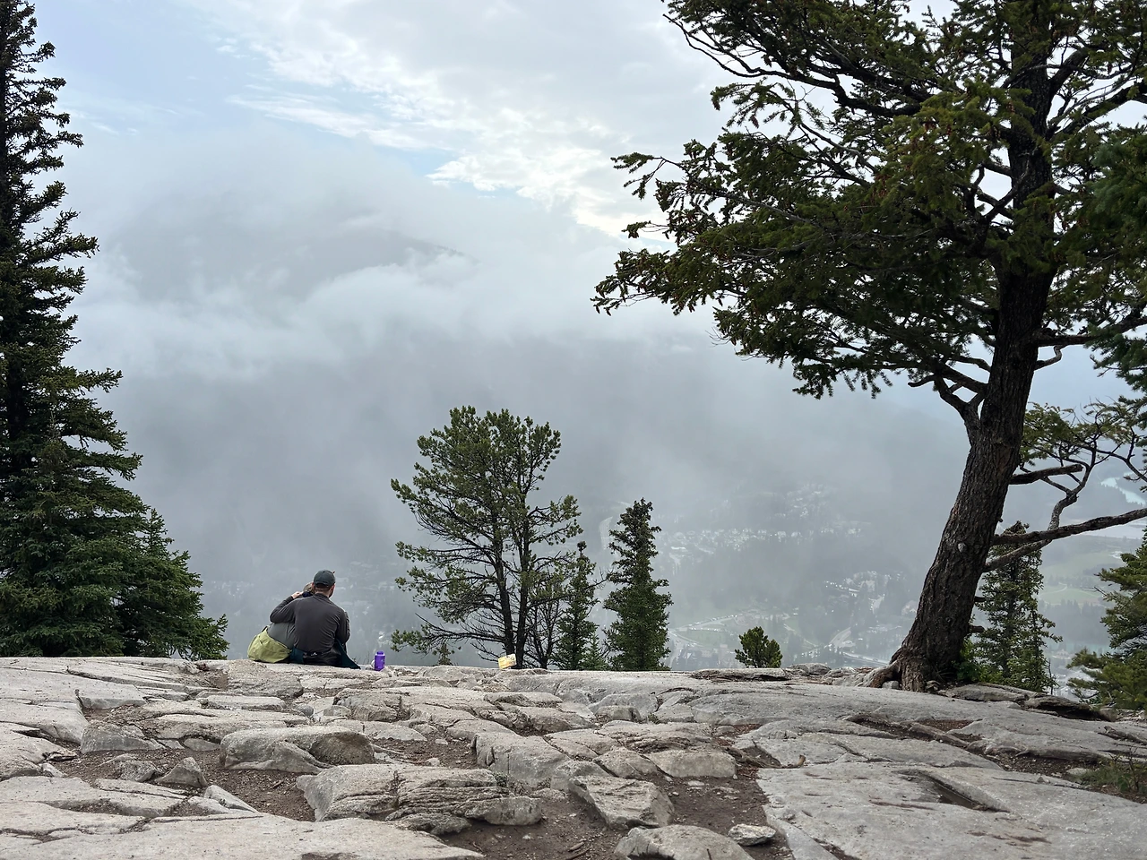 사실 정상에 올라가도 별게 없었다. 뿌연 안개가 밴프의 전경을 다 가리고 있었고, 정상에는 바위덩어리만 깔려있을 뿐이었다.