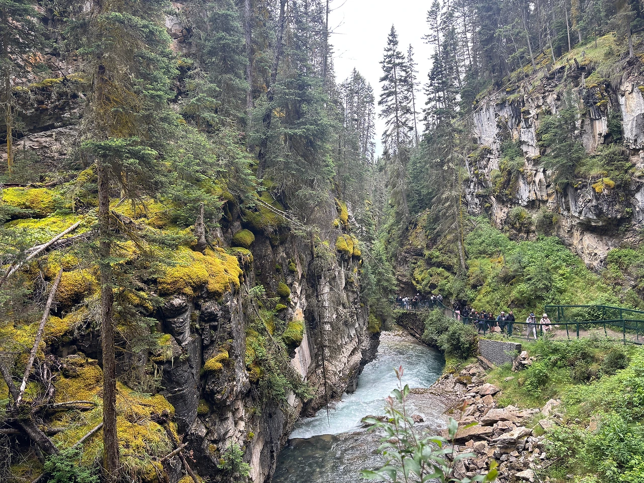 에메랄드 호를 떠나 집으로 돌아가는 길, 우리는 존스턴 협곡과 터널 마운틴 트레일 두 곳을 더 들렀다. 존스턴 협곡은 비로 길바닥이 축축해졌음에도 사람들이 북적였는데, 길이 아주 협소했던 탓에 통행이 무척 번거로웠다.