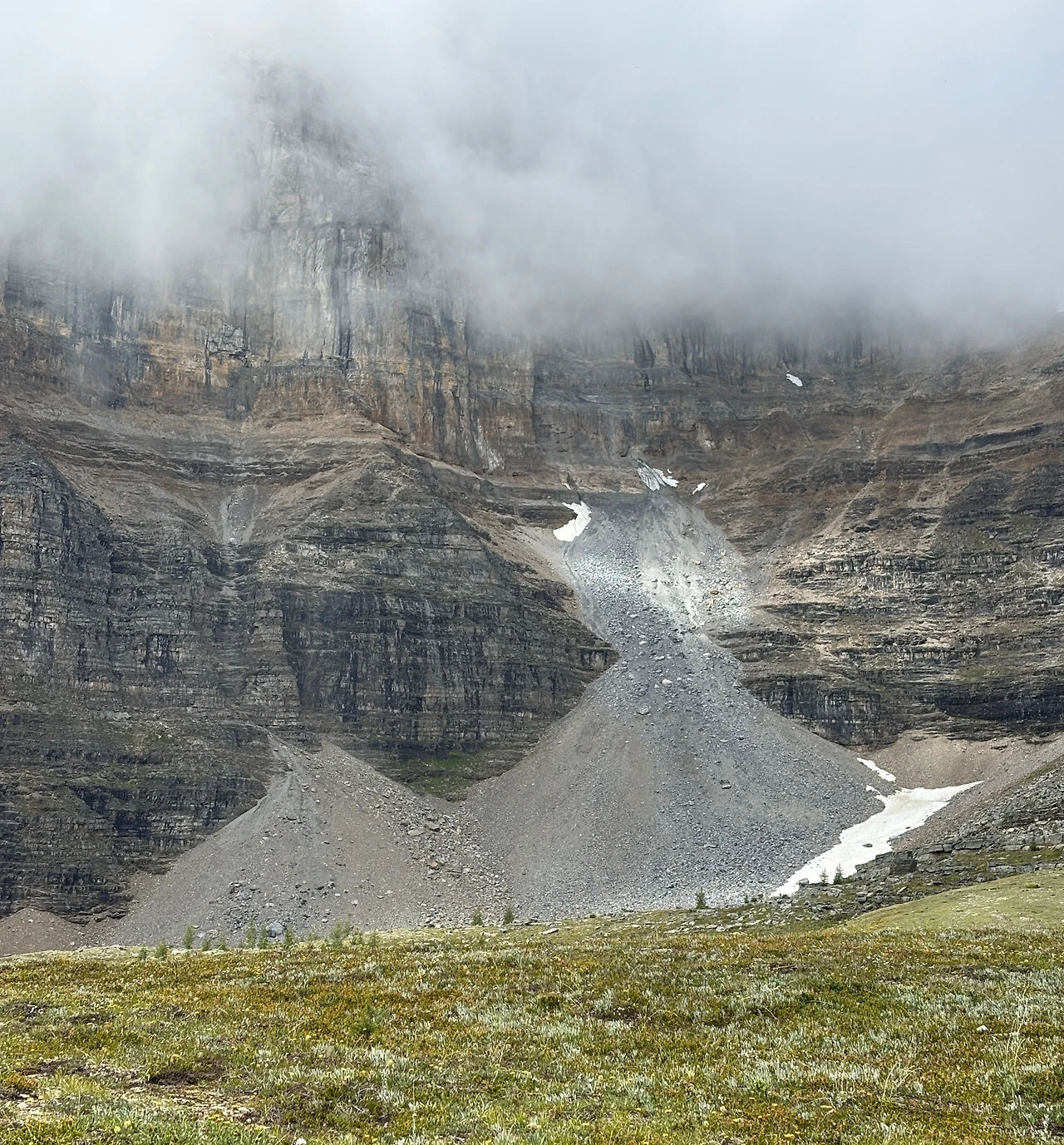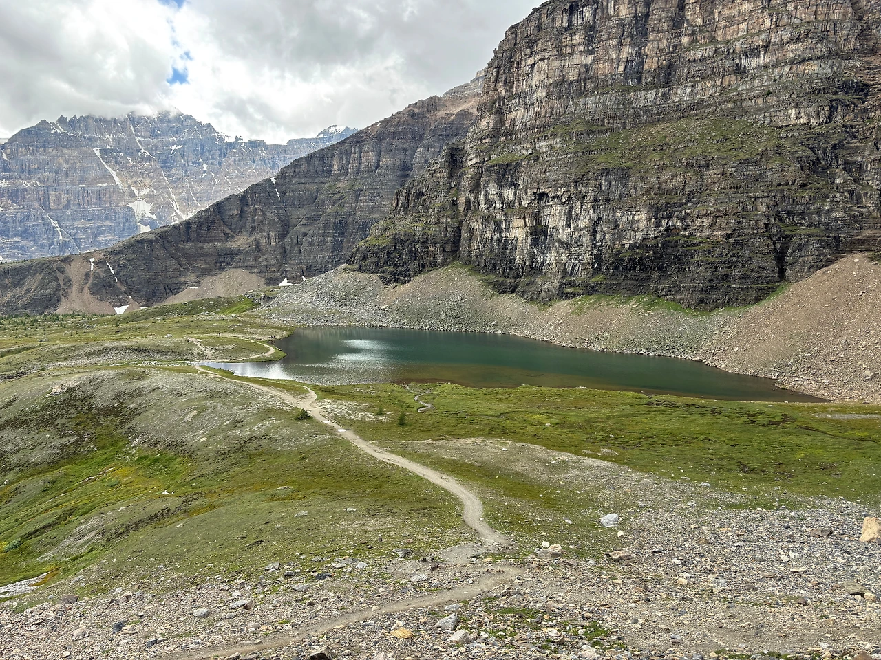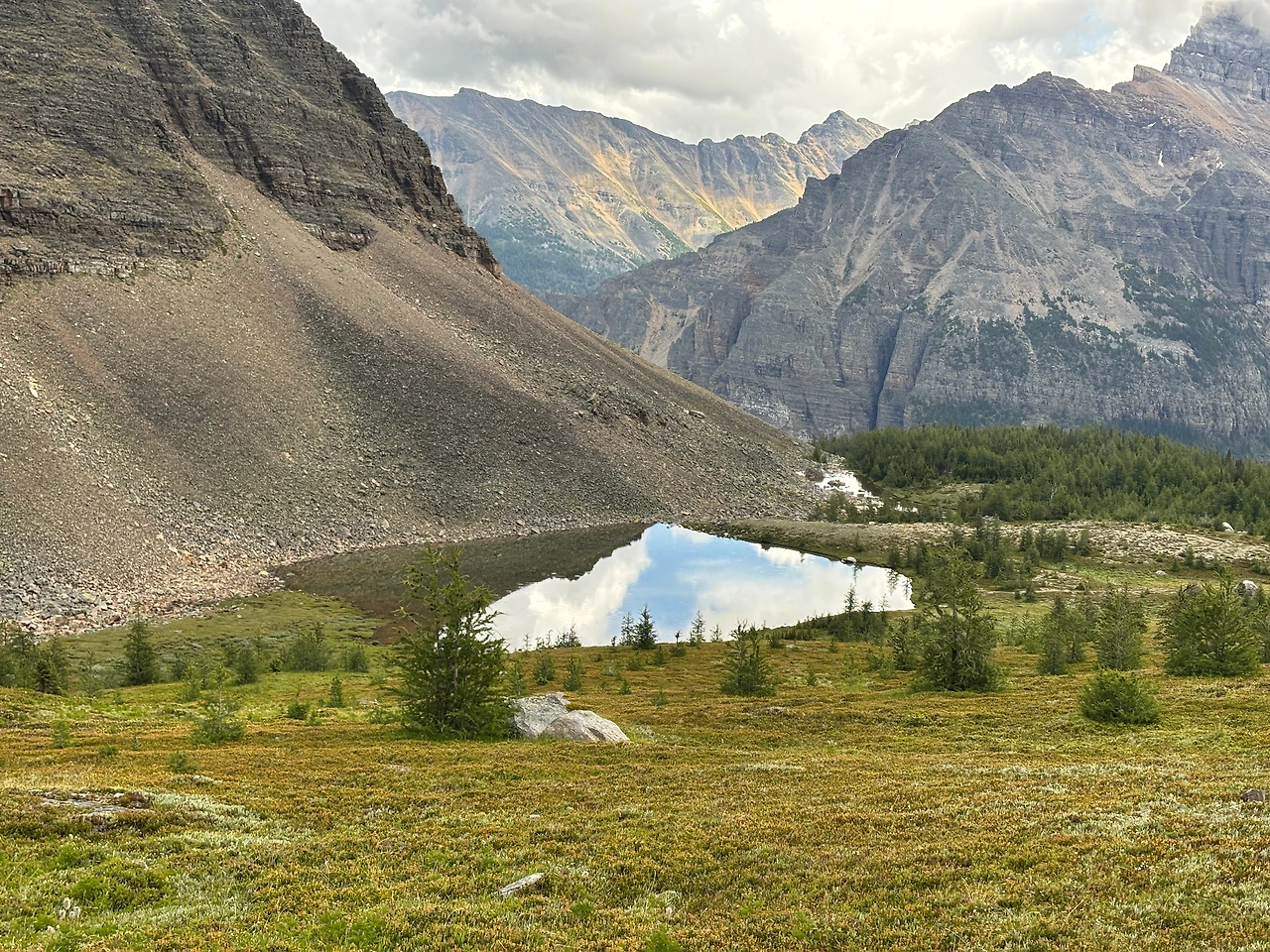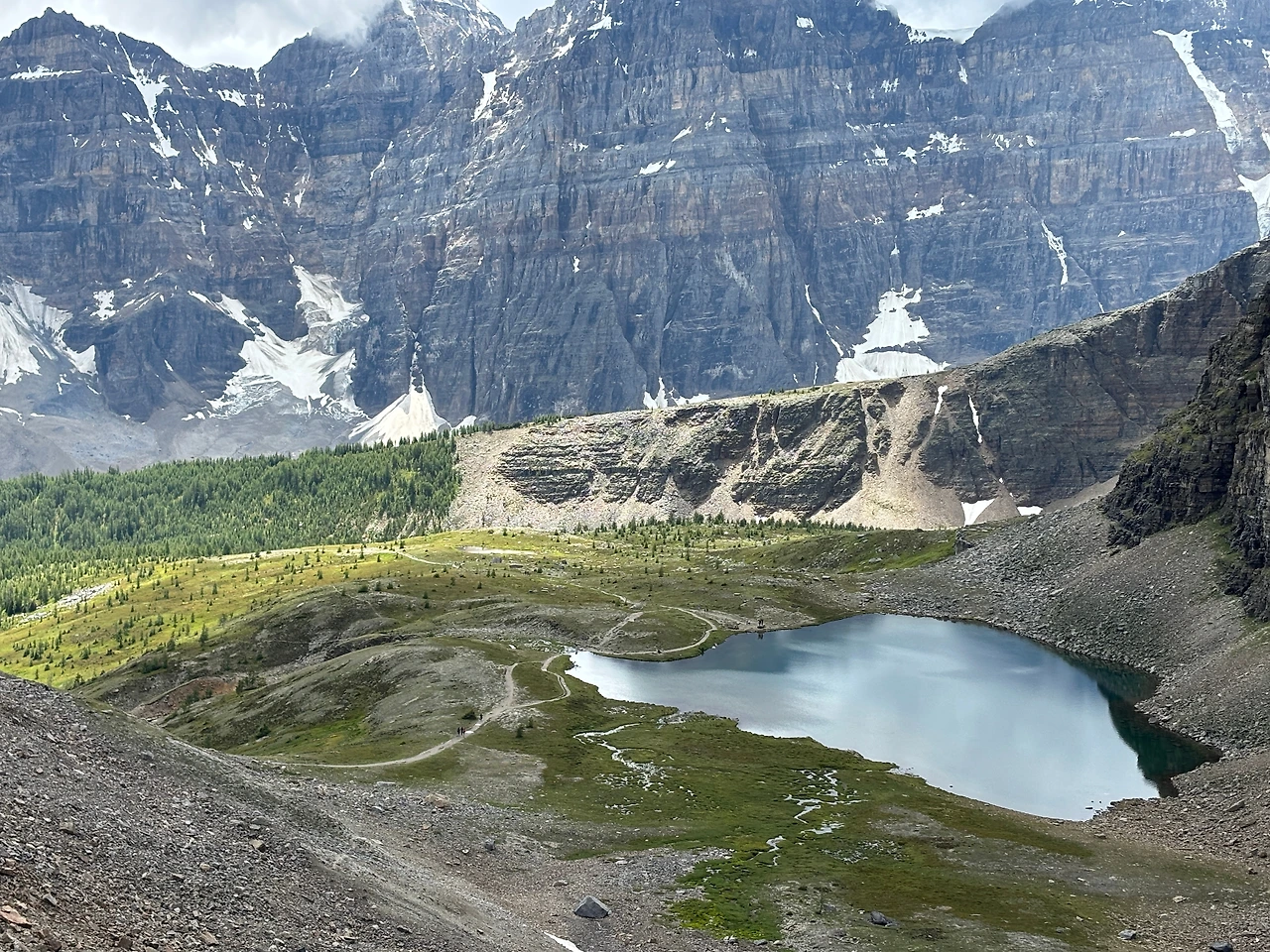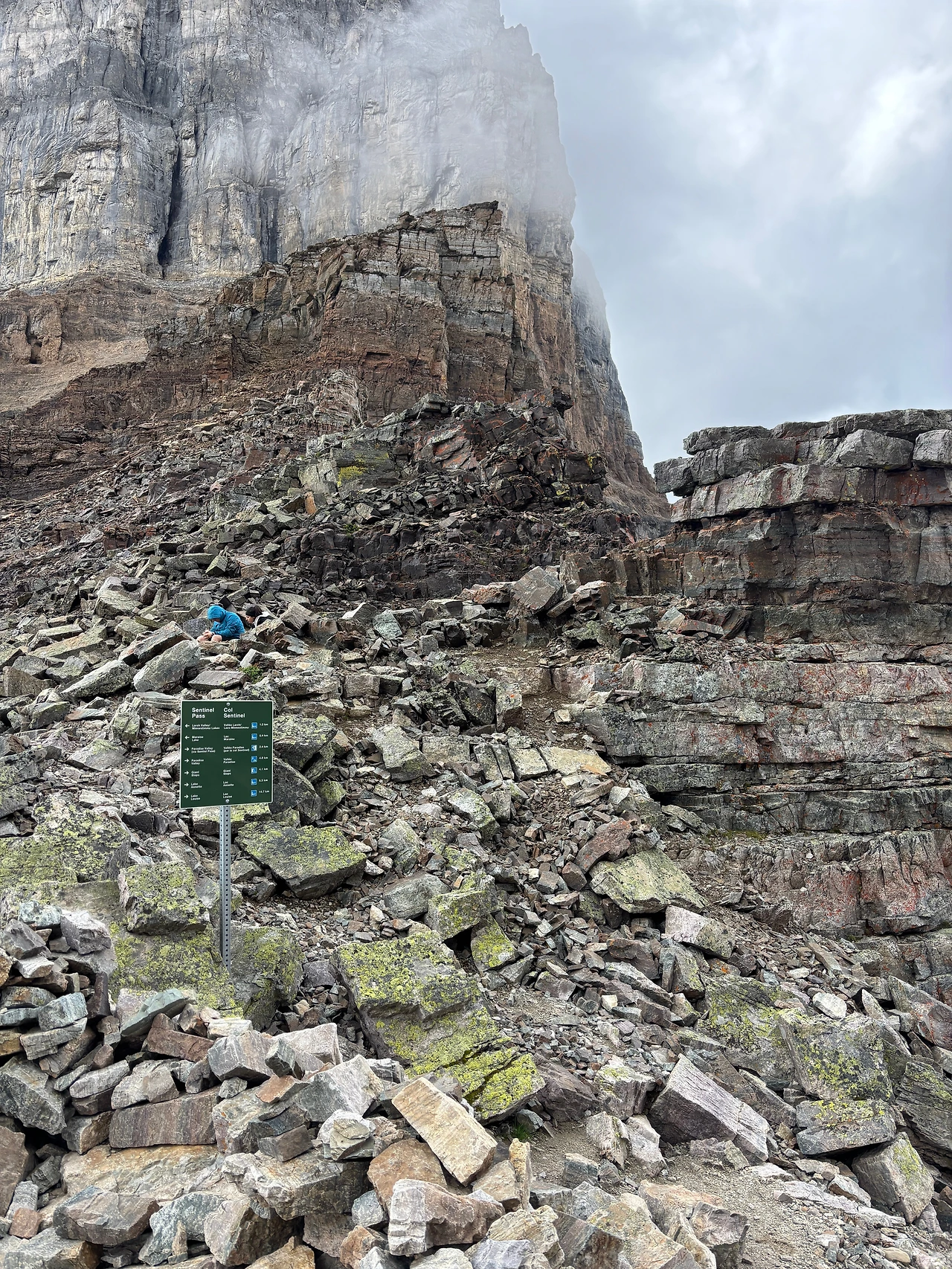 내가 어지러움을 가장 심하게 느낀 순간은 이 풍경을 마주했을 때였다. 깎아지른 절벽 아래 작은 호수가 회색빛의 석산을 비추고 있었는데, 이곳의 식생 환경을 보면 수목한계선 즈음이 아닐까 싶었다. 나무의 키가 점점 작아지다가 결국 특정 고도에 다다르면, 나무가 더 이상 자라지 못하는 알파인 툰드라(alpine tundra) 지대에 다다를 것이다.