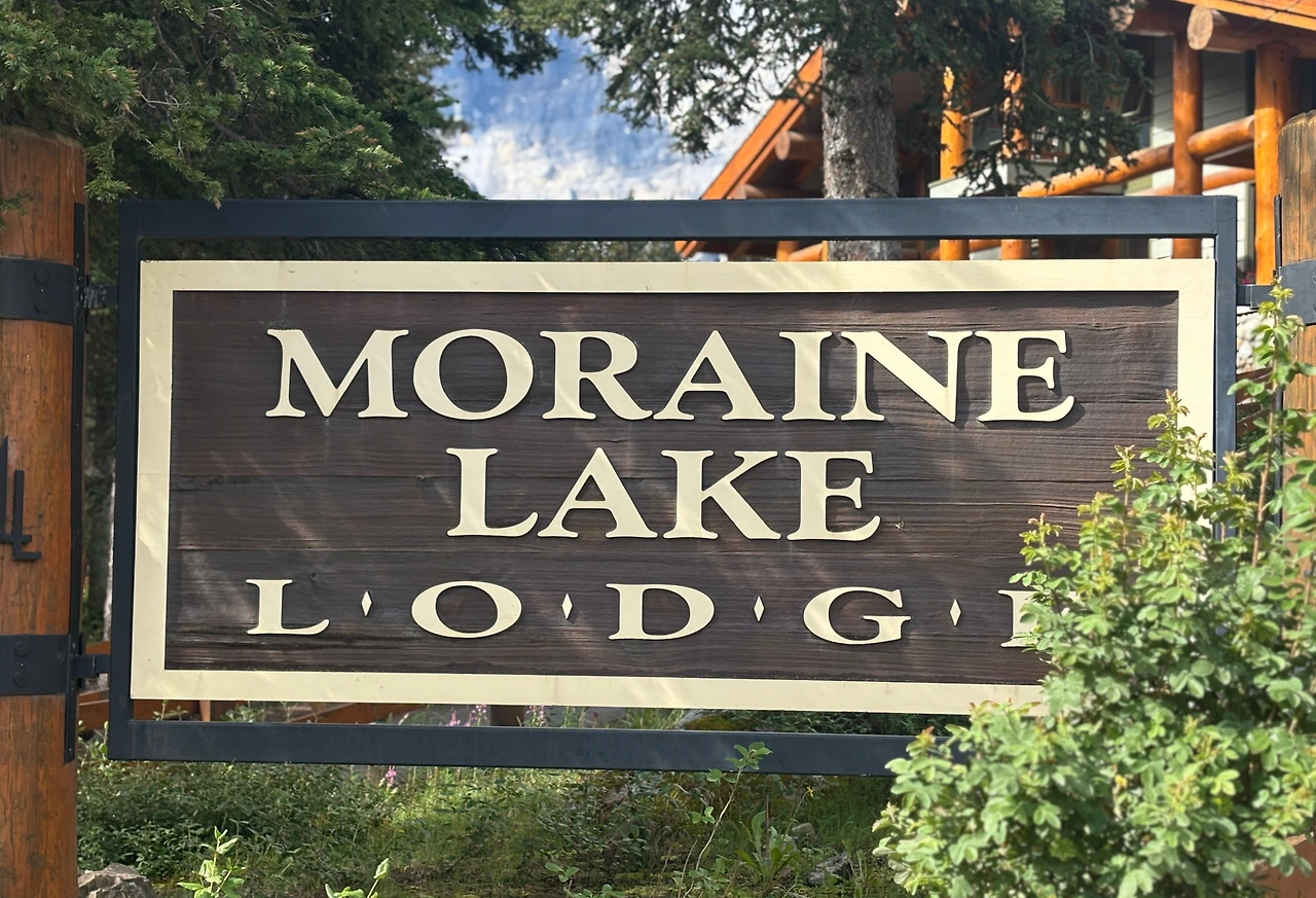 모레인 호수에 도착하자 익숙한 나무 간판 하나가 보였다. 호수마다 하나씩 있는 짙은 갈색의 이름표였다. 뒤편에 보이는 롯지(Lodge)도 간판만큼이나 캐나다스러운 디자인을 갖고 있다.