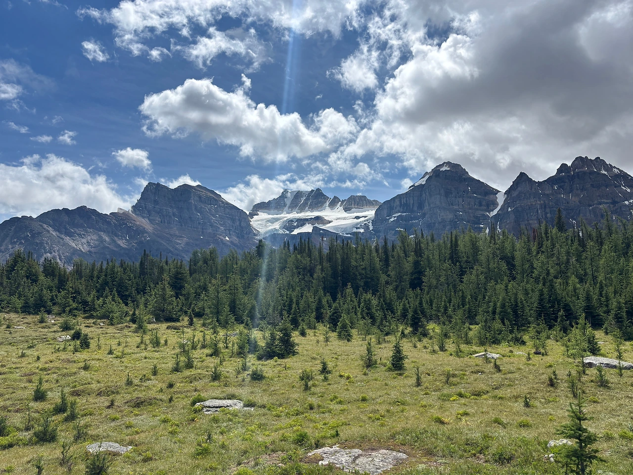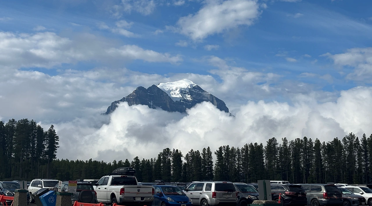 밴프로 가는 길엔 낮은 구름이 자욱하게 깔려있었다. 살면서 이렇게 두꺼운 구름이 낮게 깔린 모습은 처음이었다. 구름진 신비한 광경에 산신령이 도끼라도 들고 나타날 것만 같았지만, 산신령은커녕 소나기만 오락가락하며 변덕스러운 날씨가 계속되었다.
