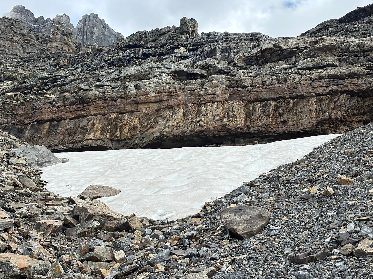 절벽을 걷다 보면 하얀 눈도 조금씩 흔적을 남기고 있다. 여름에 눈을 보다니, 신기하기만 하다. 물론 날씨는 전혀 여름이 아니다.