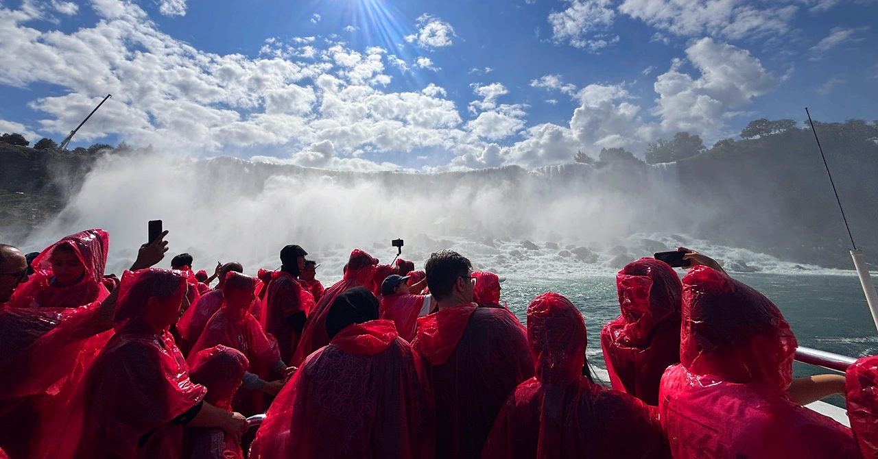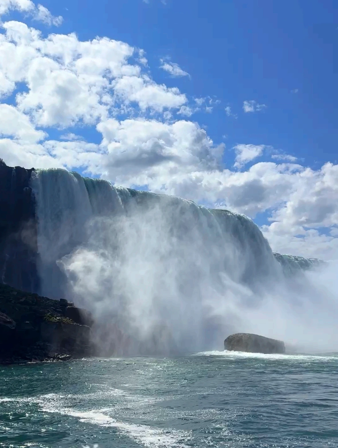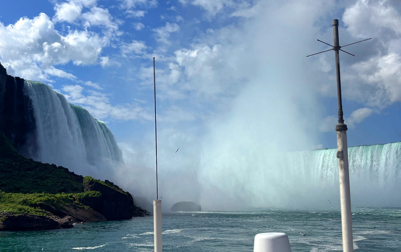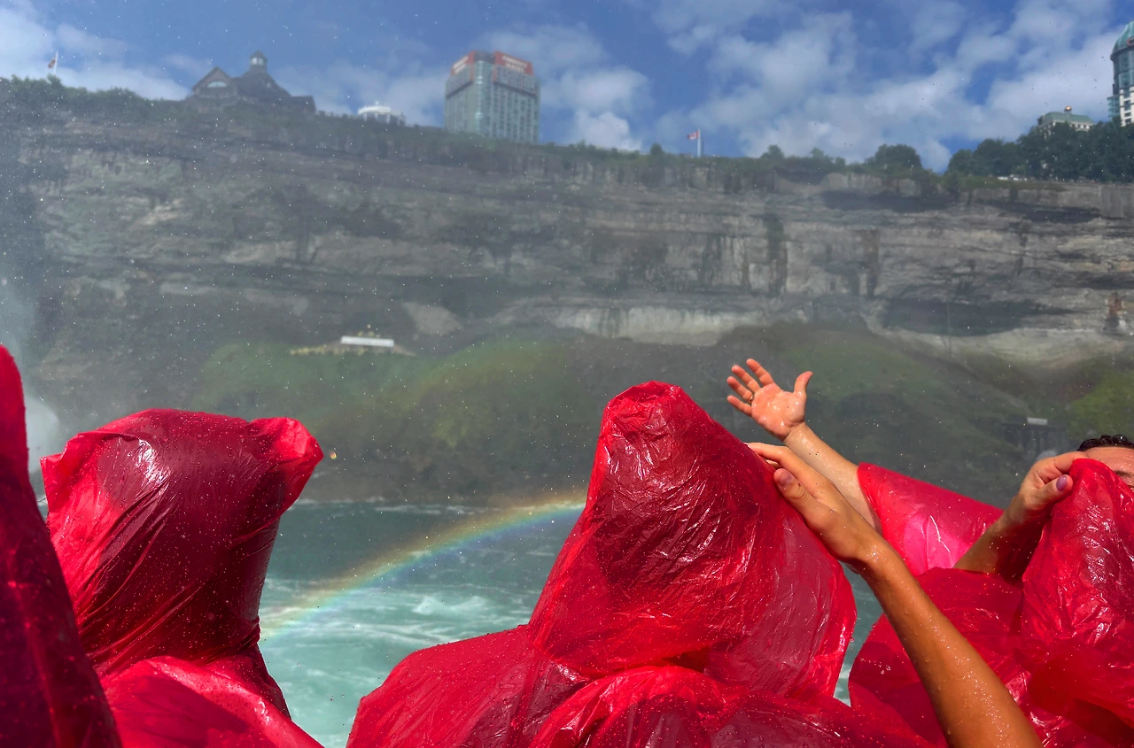 배가 폭포 한가운데에 다다랐다. 배는 더 이상 나아가려고 해도 나아가지지도 않는다. 우리는 거대한 대자연을 마주했다. 말발굽을 닮은 나이아가라 폭포, 그 속으로 들어가면 사실 아무것도 보이지 않는다. 엄청난 양의 물보라가 시야를 모두 가려 뿌옇다는 느낌밖에 없다.