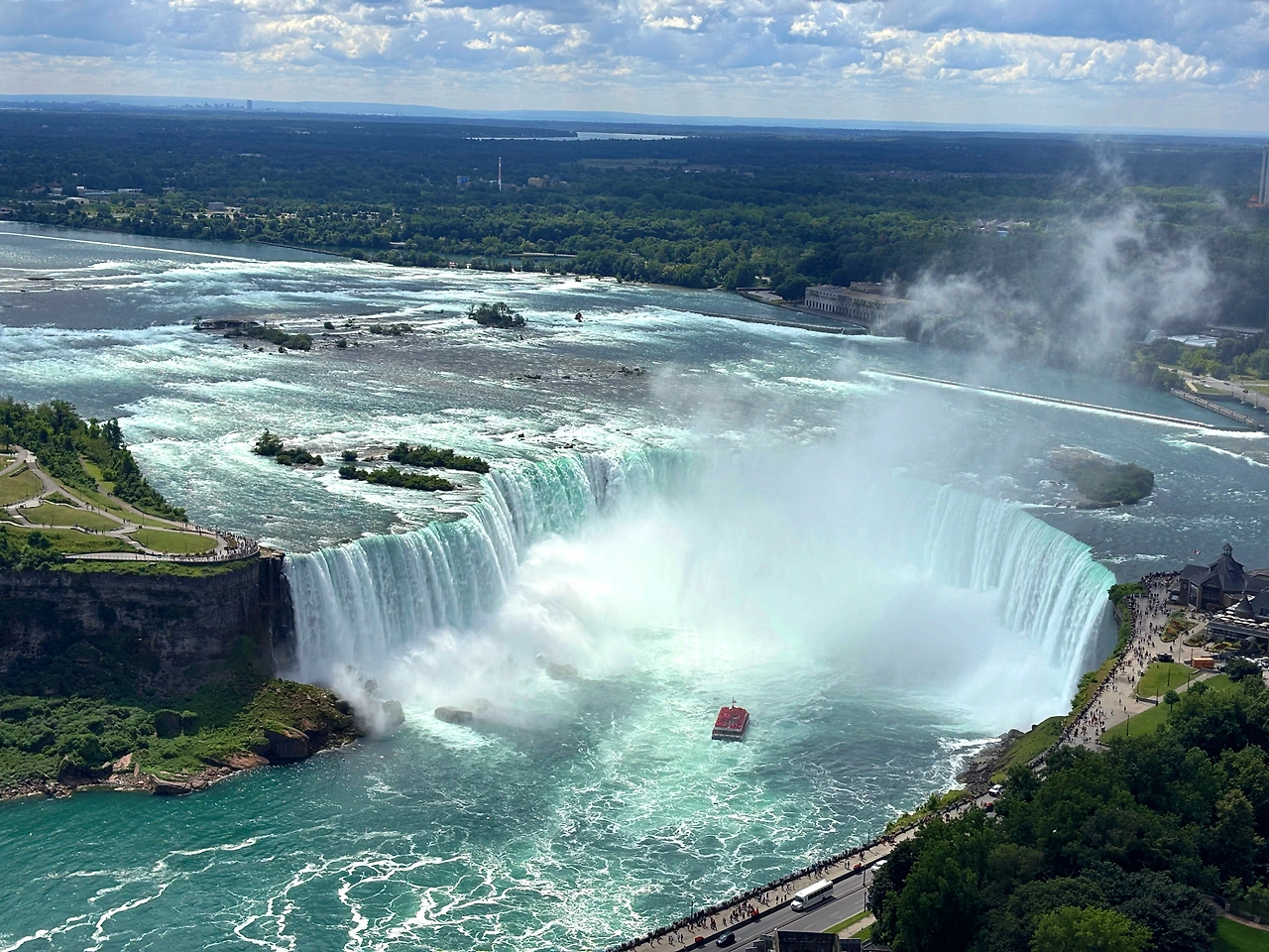말발굽 모양의 나이아가라 폭포를 중심으로 미국과 캐나다의 풍경이 한눈에 들어온다. 위에서 바라보면 폭포수가 흘러내리는 땅덩어리의 단면이 더 돋보이는데, 마치 나이아가라 강을 누가 한 입 베어문 것 같다.