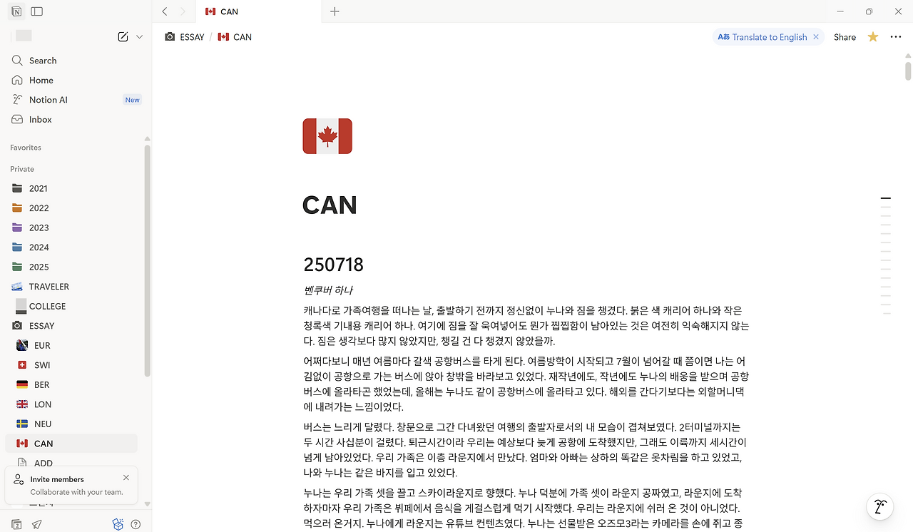 먼저 여행을 하면서 매일 밤 일기를 썼다. 그날 일어난 일들을 솔직하고 생생하게 기록해 보는 것이다. 그리고 한국에 돌아오자마자 캐나다에서 적은 이 일기를 바탕으로 여행기를 작성해 나가기 시작했다. 나의 모든 글은 이 일기를 베이스로 만들어졌다.