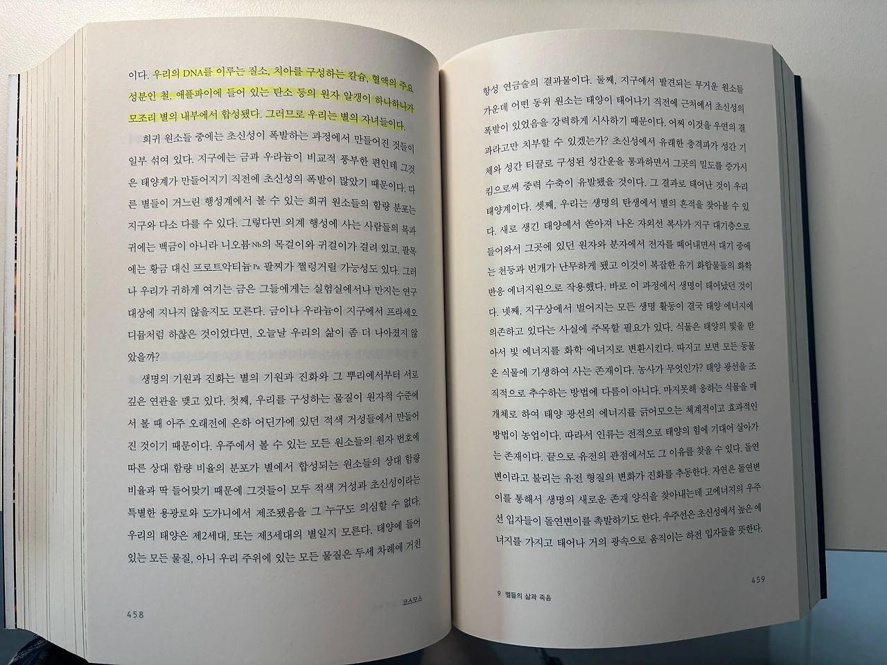 베일마운트에서 밤하늘의 별을 본 에피소드를 쓸 때는 칼 세이건의 『코스모스』도 다시 펼쳐 보았다. 칼 세이건은 밤하늘을 어떻게 표현했나, 은하수를 밤하늘의 등뼈라고 묘사했군. 별에서 합성된 물질로 만들어진 우리를 '별의 자녀'들이라 표현했군. 나의 일기 속 '별은 우리를 아이로 돌아가게 했다'라는 문장과 칼 세이건의 '별의 자녀'들이라는 표현이 연결되면서 아이디어가 번뜩 떠오르기도 했다.