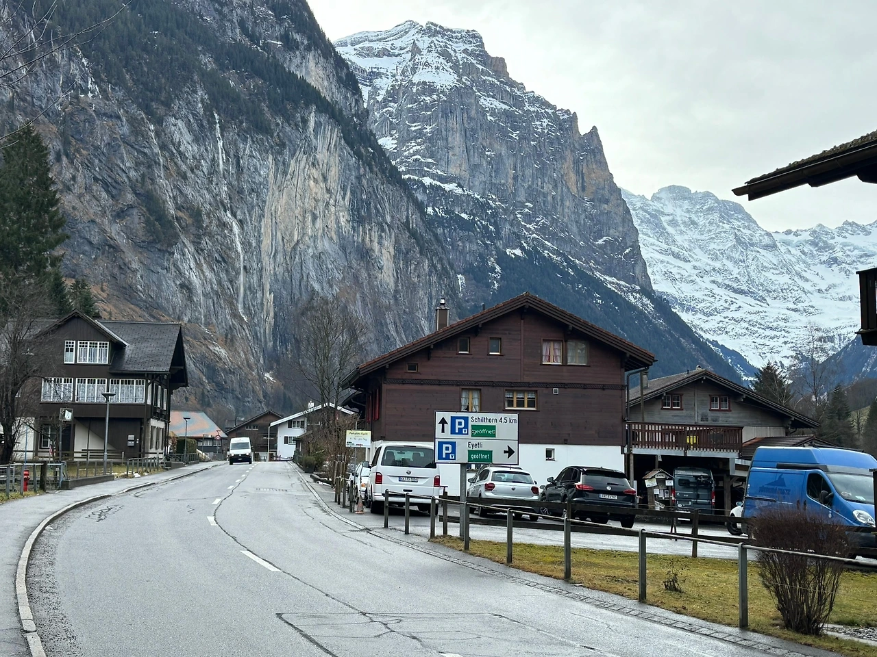 마치 영화 세트장을 구경하는 듯한, 그 정도의 한산함이었다. 나무로 만들어진 샬레들, 차도 잘 다니지 않는 도로와, 설산과 암산을 보면서 어쩐지 멍해지는 느낌이 들었다.