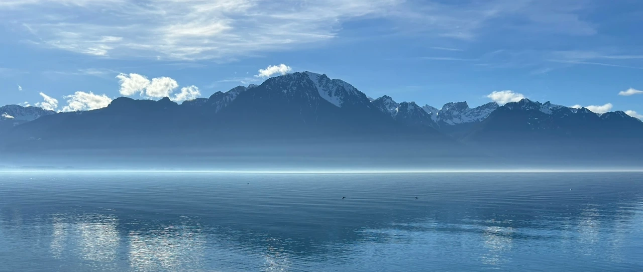 건물들을 걷어내고 탁 트인 공간에 다다르자, 레만 호가 완전히 모습을 드러냈다. 국경선이 자리한 레만 호 건너편에는 프랑스의 산맥이 하나 있었는데, 산맥과 호수의 경계가 하얗게 빛나고 있었다.