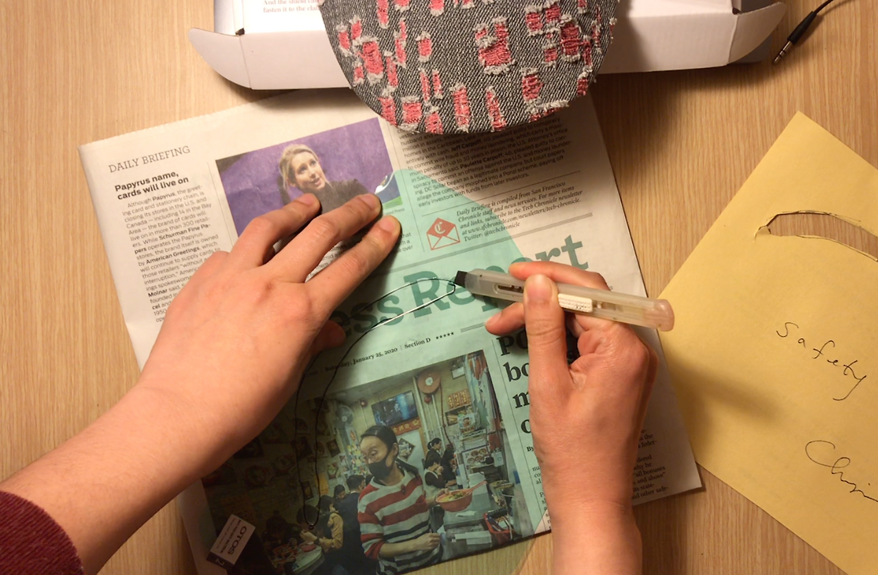 2. 모자의 캡 부분의 커브와 넓이를 펜으로 그린 후 잘라낸다.