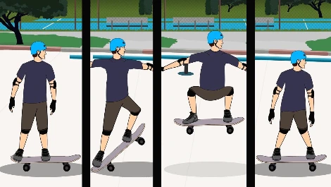 스케이트보드가 이동수단이라고? 그렇다면 빠르게 포기하길 바란다. 더 편하고 빠른 전동킥보드와 자전거가 있다. 준비물을 갖췄다면 “알리”부터 시작해 보자. 전문용어로 “알리”, 일반인들에게는 점프로 보이는 단순한 동작에 스케이트 보드의 모든 원리가 들어있다. 알리는 한쪽 발을 땅에 부딪혀 보드를 튕겨 오르게 하며 반대발로 마찰을 일으켜 보드를 끌어올리며 균형을 잡는 행위로, 발을 차는 방향 보드의 회전등에 따라 다양한 기술로 파생된다. 보통 알리를 익히냐 못 익히느냐로 스케이트보드에 빠지냐 흥미를 잃느냐가 결정된다.