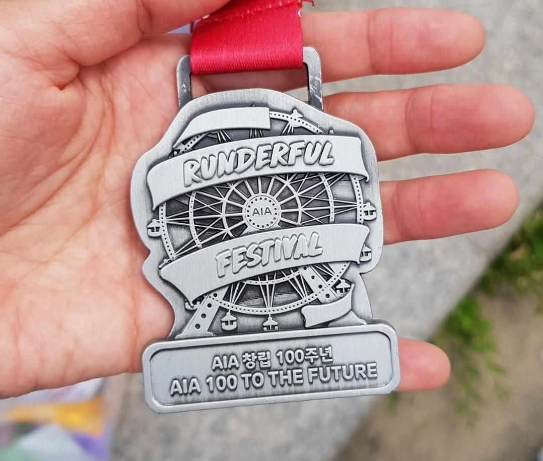 그 길고 긴 억겁이 지나고(그래봤자 1시간이 좀 넘는 시간이다) 우리는 완주라는 기쁨을 얻었고 생애 첫 레이스라는 새로운 타이틀을 가질 수 있었다. 어쨌든 완주를 하면 누구나 가질 수 있는 '완주 메달'이 그렇게 빛나보일 수 없었다. 인생에서 메달 자체를 처음 가져본 거라 적잖은 자존감이 생겼다. 아마도 올림픽에서 메달을 가졌을 때의 느낌을 10,000분의 1 정도 간접적으로 느껴봤다고 해야 하나.