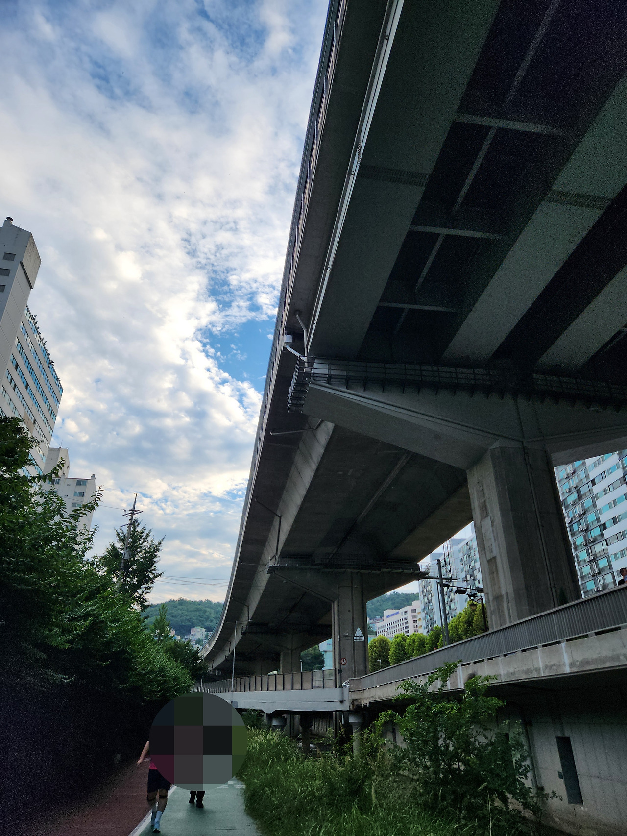 호기롭게 출발할 땐 언제고 우리 집은 언제 나오는지만 생각했다. 그래도 새로운 코스로 뛴다는 것은 너무 신나는 일이다. 새로운 건물과 나무들을 지나치면서 무거운 어깨와 풀려가는 다리는 애써 잊으려 했다. 설상가상 절반정도 오니 비가 조금씩 내릴 기세다. 비 오기 전의 습도가 온몸을 덮쳤다.