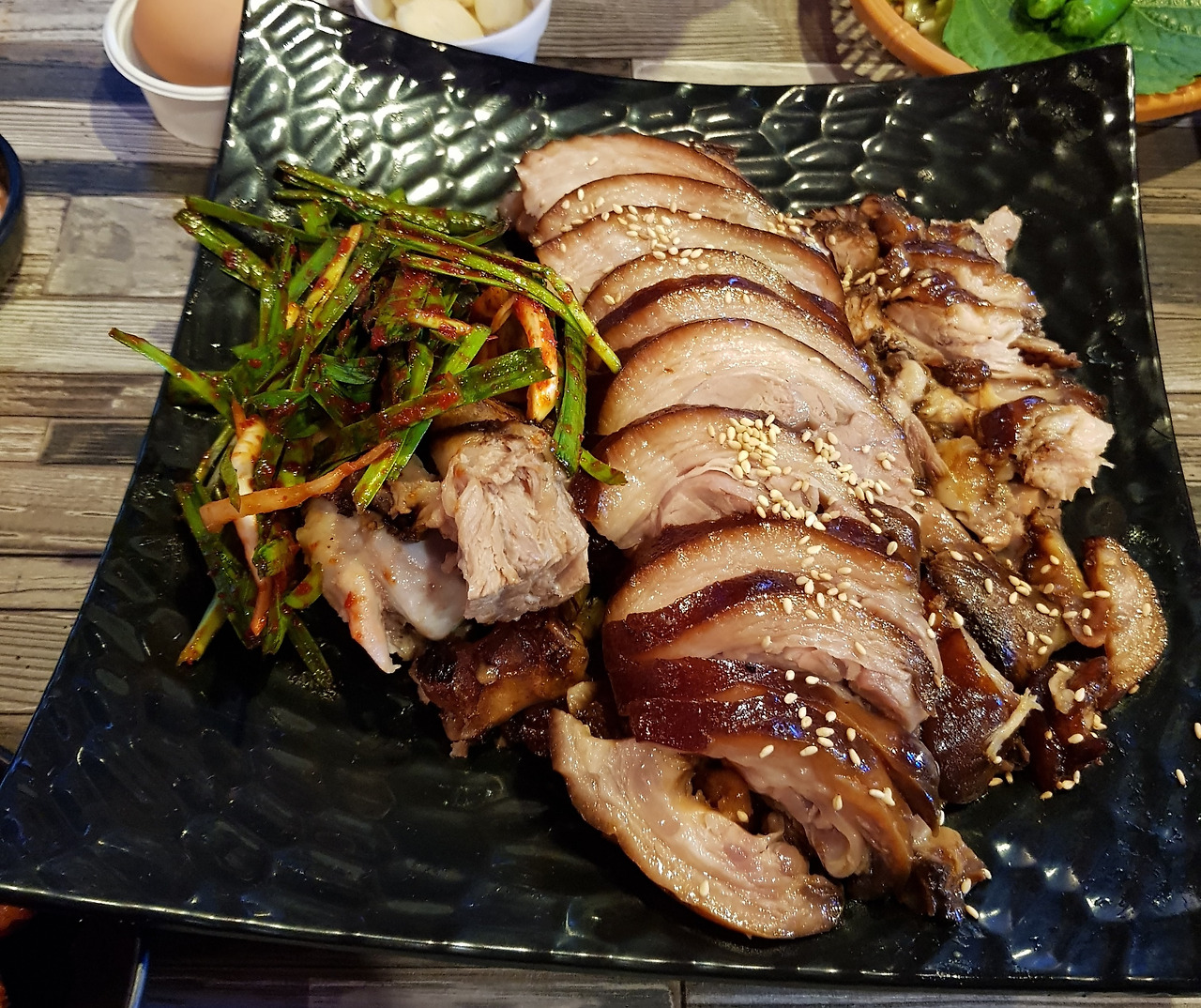 이름만 들어도 벌써 바삭하다. 말 그대로 돼지 족을 통째로 튀겨낸 요리다. 촉촉하고 야들야들한 족발만 먹던 우리들에게는 상상이 잘 안 간다. 역시나 족발의 기름짐을 상쇄시켜 주는 식초와 간장으로 만든 디핑소스에 찍어먹는다.