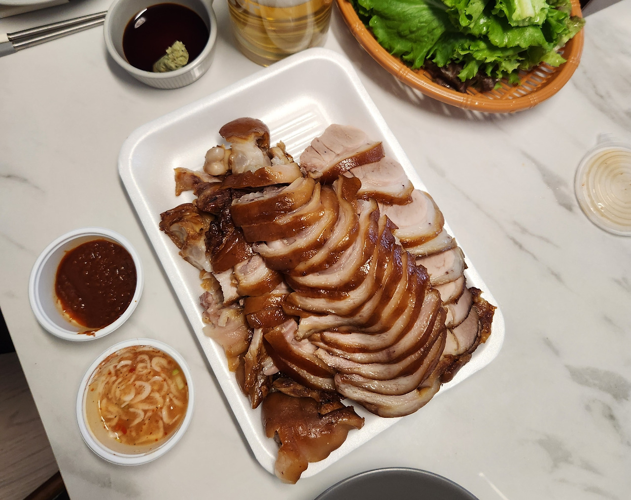 각종 한약재와 간장, 마늘과 함께 오래 끓여낸 족발은 따뜻하게 먹어도, 차갑게 먹어도 매력적이다. 먹다 남긴 족발은 볶음밥에 넣거나 양념 족발로 해 먹어도 거부감 없이 맛있다. 오독한 무말랭이와 새우젓을 얹어서 크게 한입 쌈 싸 먹고, 뼈에 붙은 살은 야무지게 뜯어먹는 재미도 있다. 조금 느끼하다 싶을 때쯤 새콤 매콤 막국수와 함께하면 이토록 완벽한 음식이 있을까 싶다.