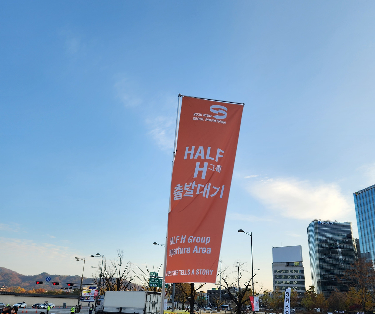 게다가 조금 춥긴 했지만 날씨도 너무 맑고 좋았다. 달리면서 땀이 조금 나겠지만 꽤 시원하게 달릴 수 있는 날씨다. 후다닥 짐부터 맡기고 몸도 풀고, 괜히 긴장되니 화장실도 자주가게 된다.
