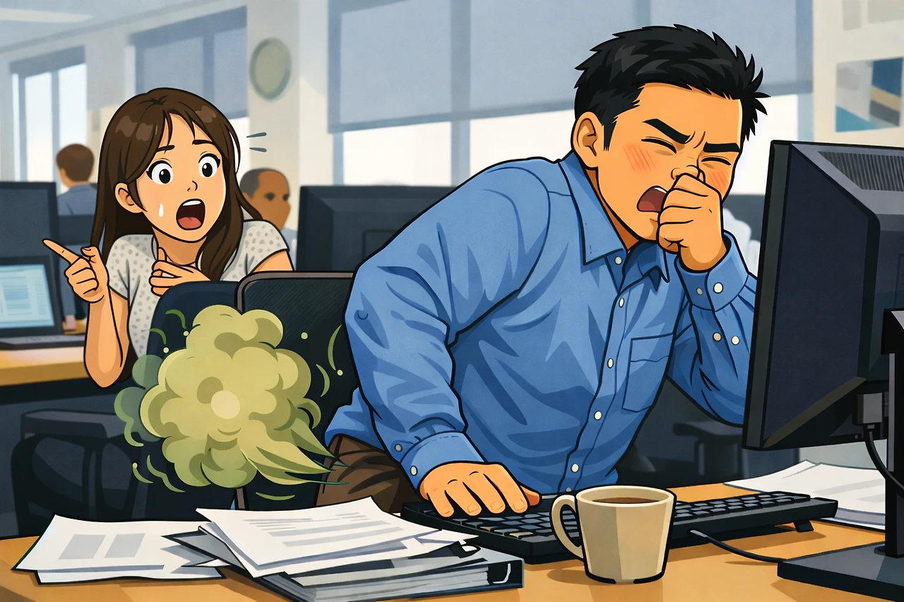 얼마 지나지 않아 조용한 사무실에서 내 귀에 정확하게 들리는 그 소리가 또 났다. 크진 않지만 옆사람에게는 정확하게 들리는 괄약근이 풀리면서 들리는 그 소리. 그런데 이번에는 반응이 달랐다.