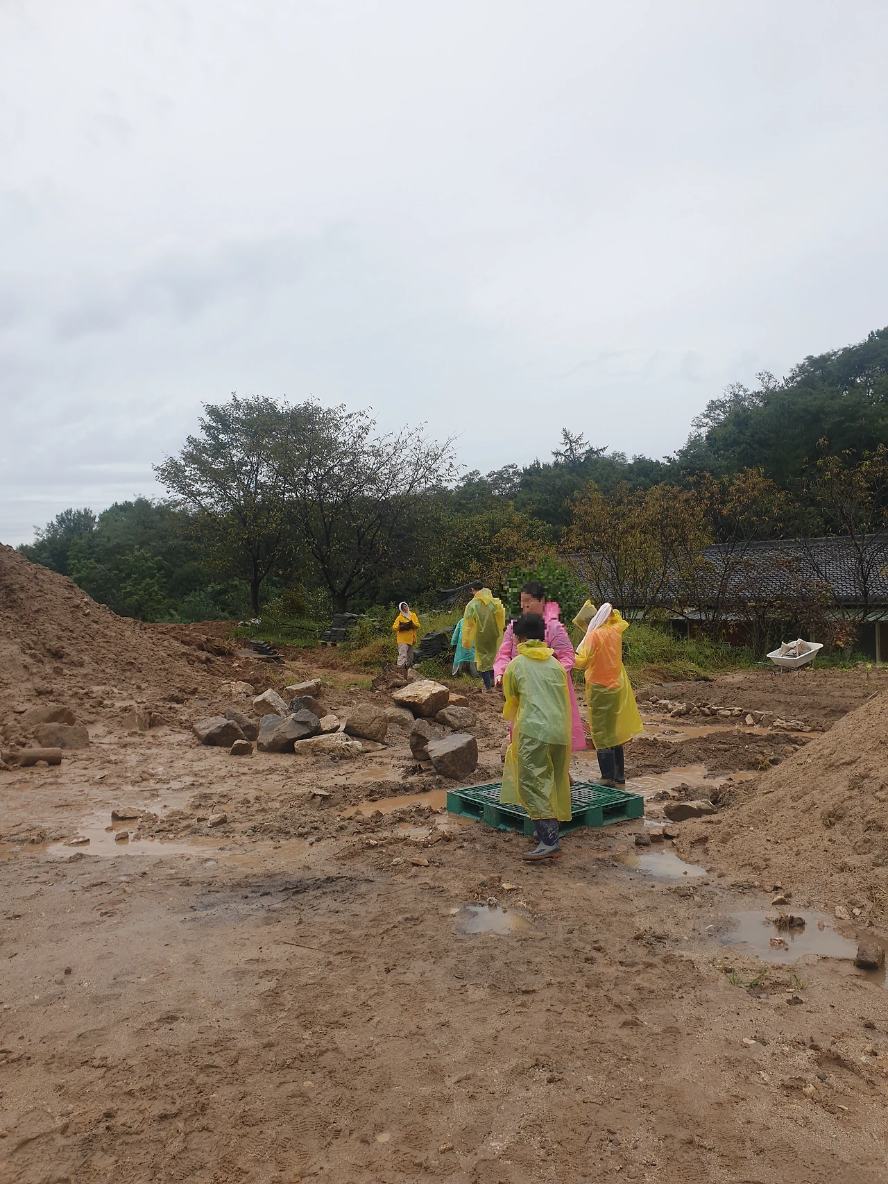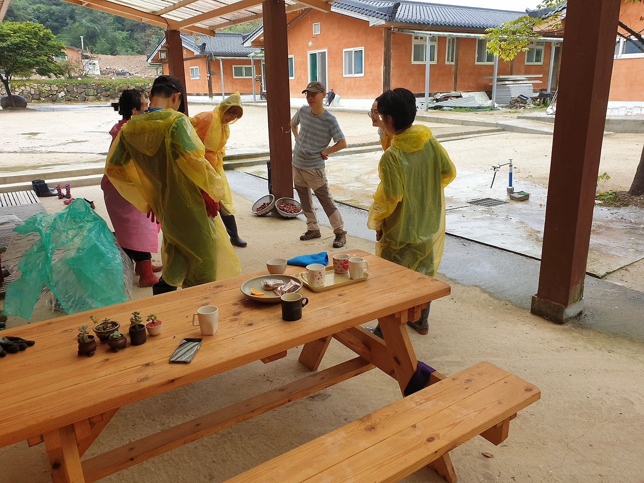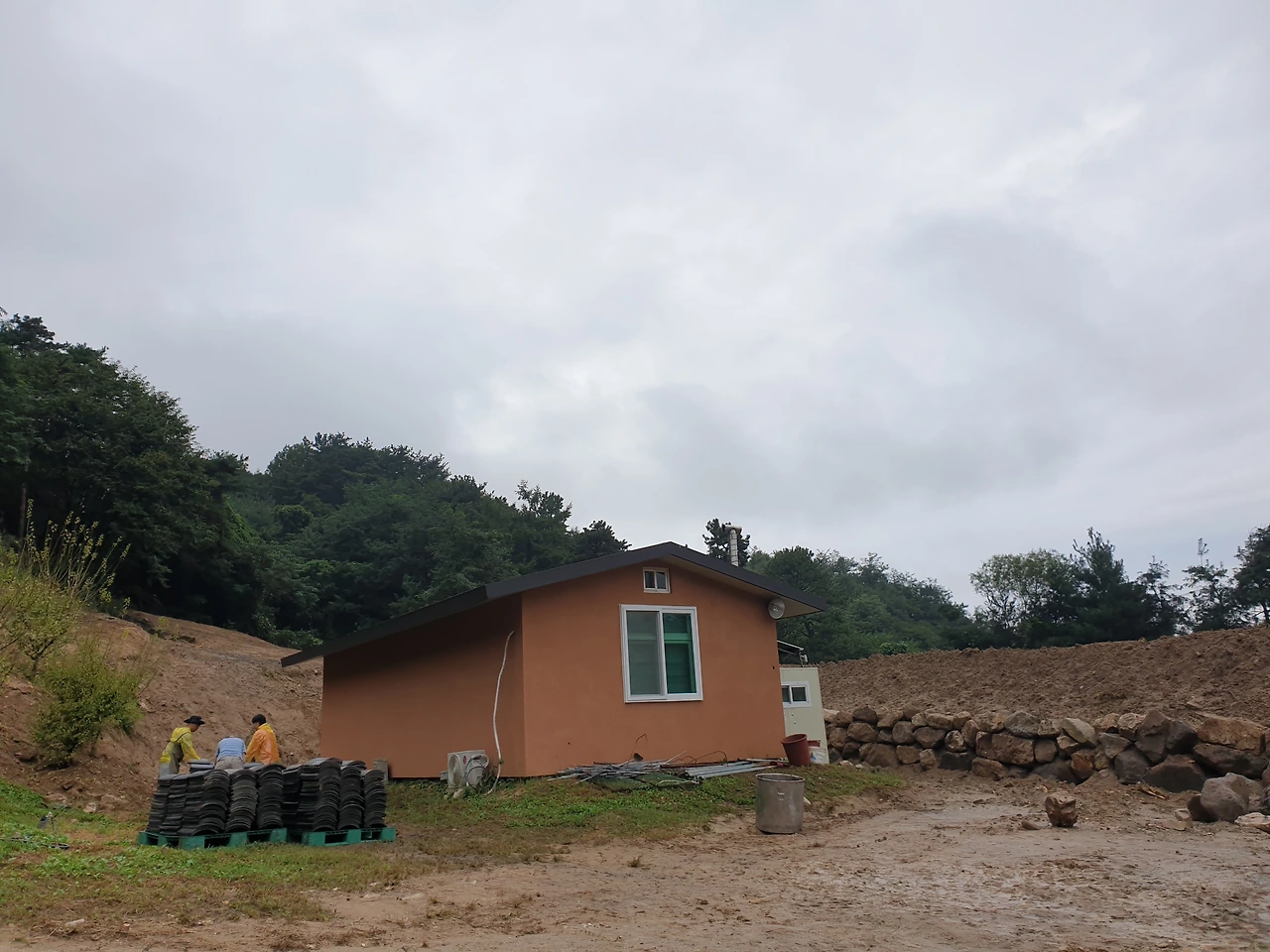 안성 활인선원... 비 오는 날 기와 옮기기