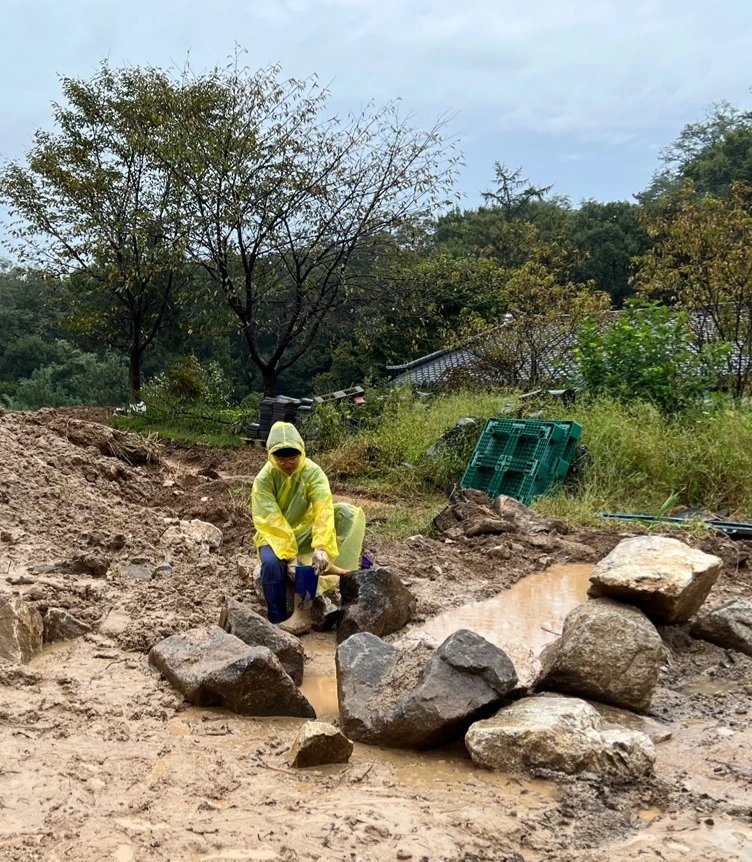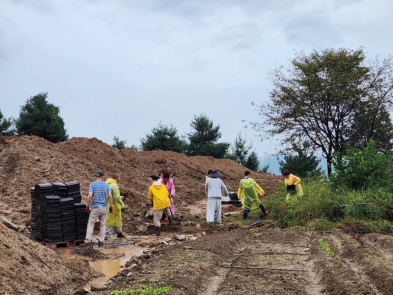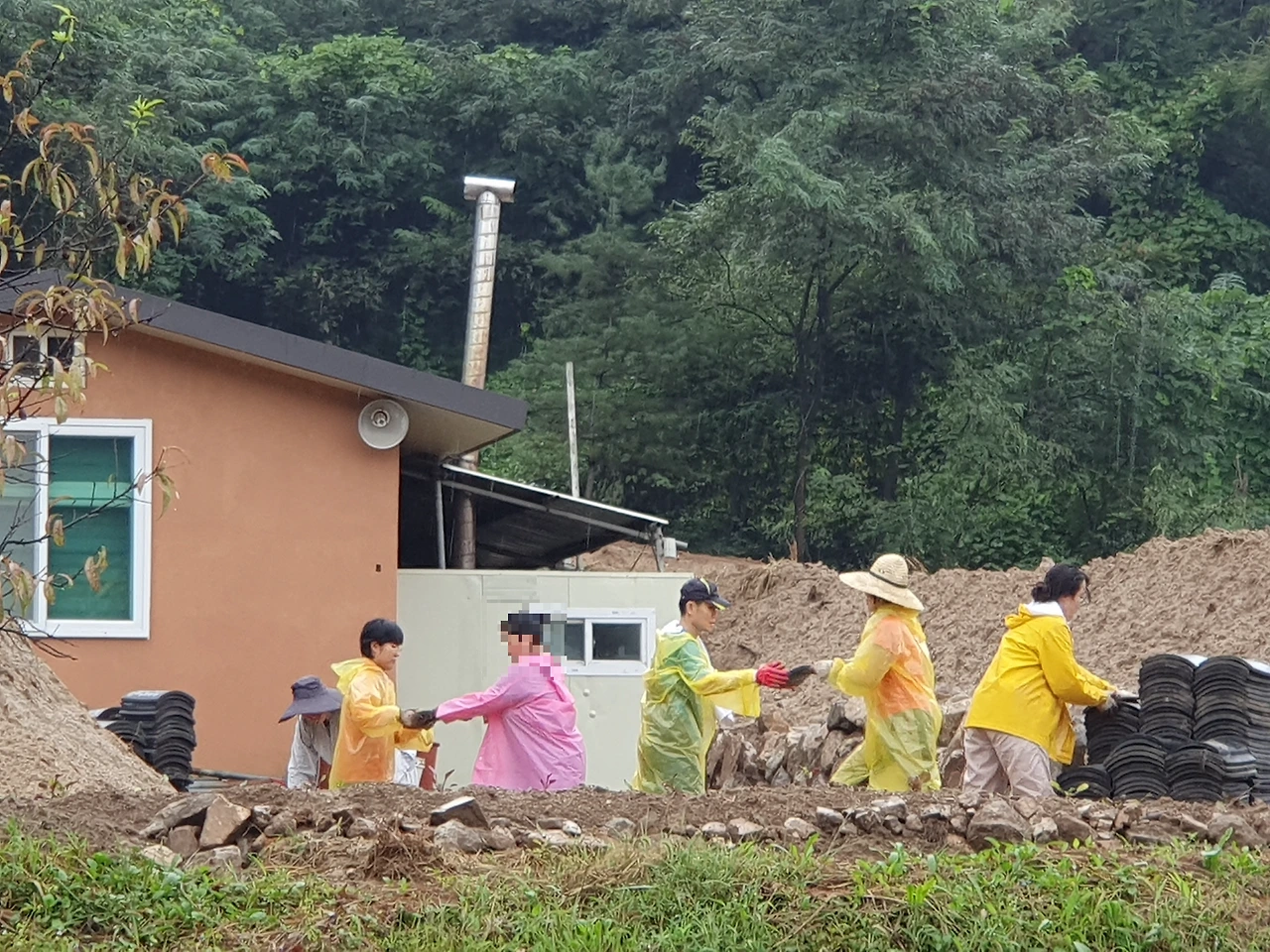 안성 활인선원... 비 오는 날 기와 옮기기