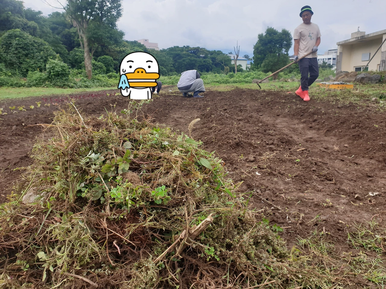그러고는 고추밭에 가서 고추를 땄어요! 강남 주민들이 이런 걸 다 해보네요.