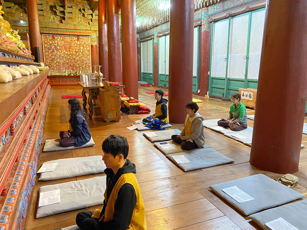 그렇게 일주일 내내 염불했는데 또 앉아서 좌선했다고 하네요! 스님들보다 더 열심히 정진하는 그들입니다.