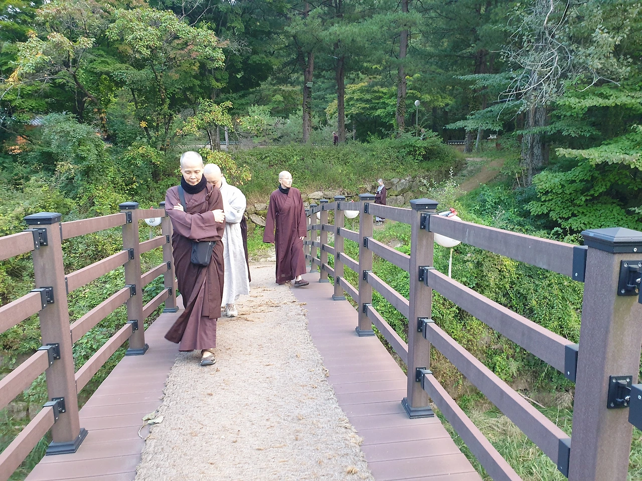 염불을 마치고, 각자 일정에 따라서 법주사로 향했습니다. 승가 인원 전체는 남아서 승가회의를 하느라 좀 늦게 출발했지만, 재가인들은 해지기 전에 법주사에 도착할 수 있도록 먼저 출발했습니다. 먼저 도착한 사람들은 방배정 받고, 명상수행, 산책 하면서 시간을 보낸 것 같아요!