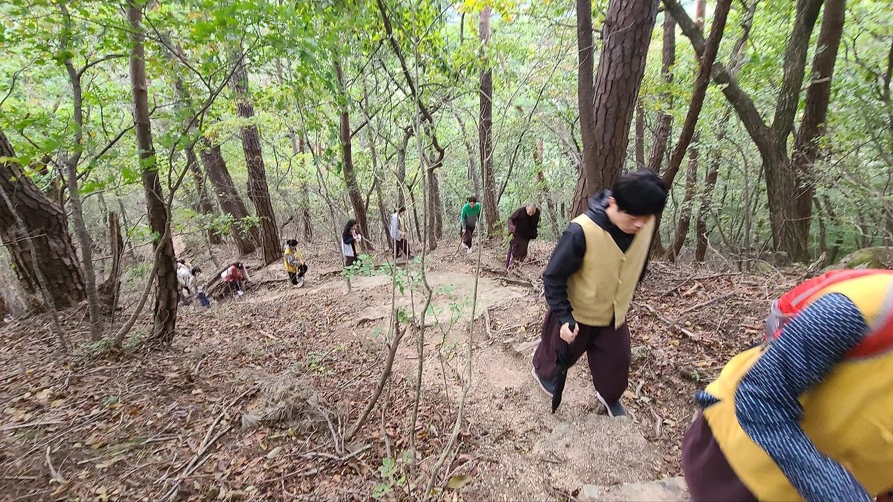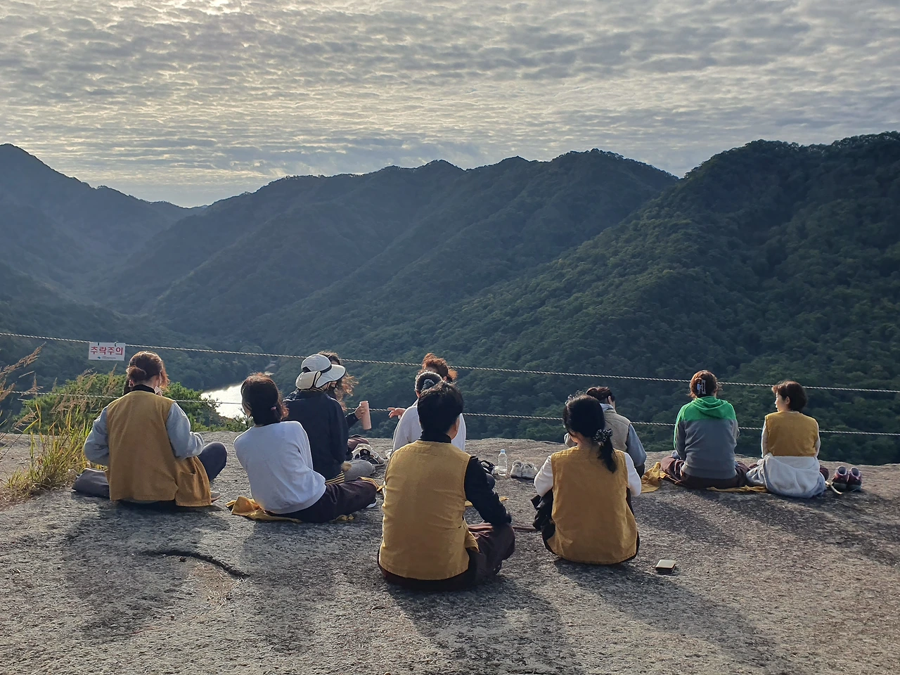 새벽예불 후 아침먹고 일부 대중은 현은스님과 함께 수정봉에 올랐습니다.