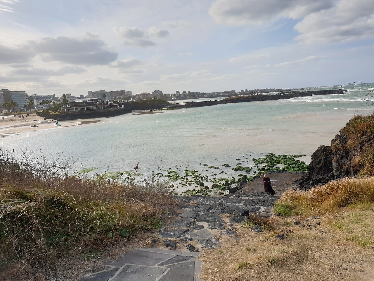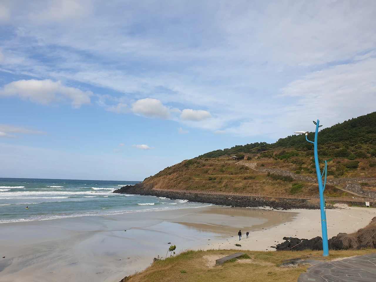 스님께서 절에 돌아가는 길에 함덕해수욕장 구경시켜주셨어요. 캘리포니아 생각이 나더군요.