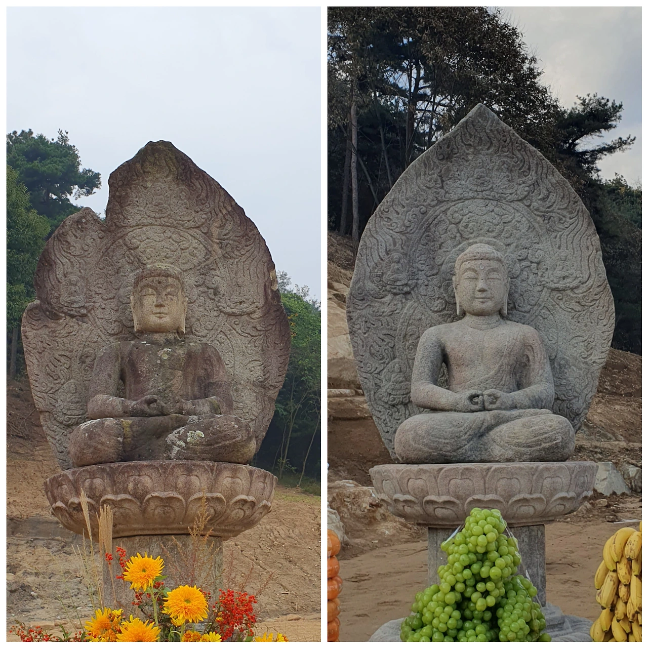 몇 달전만 해도 부처님 복원 전에는 왼쪽의 모습이었는데, 복원 후 이렇게 아름다운 모습이 되었습니다.
