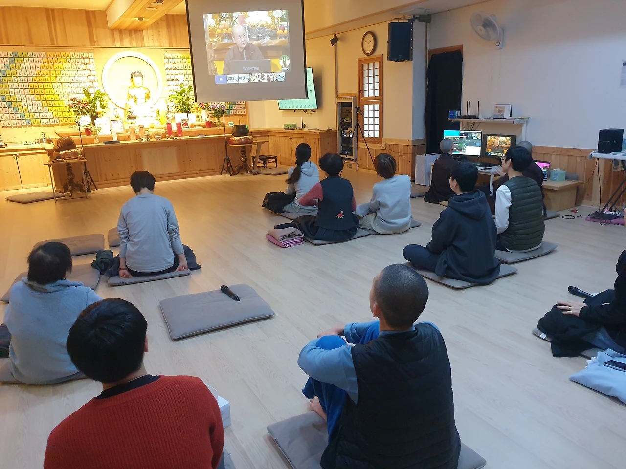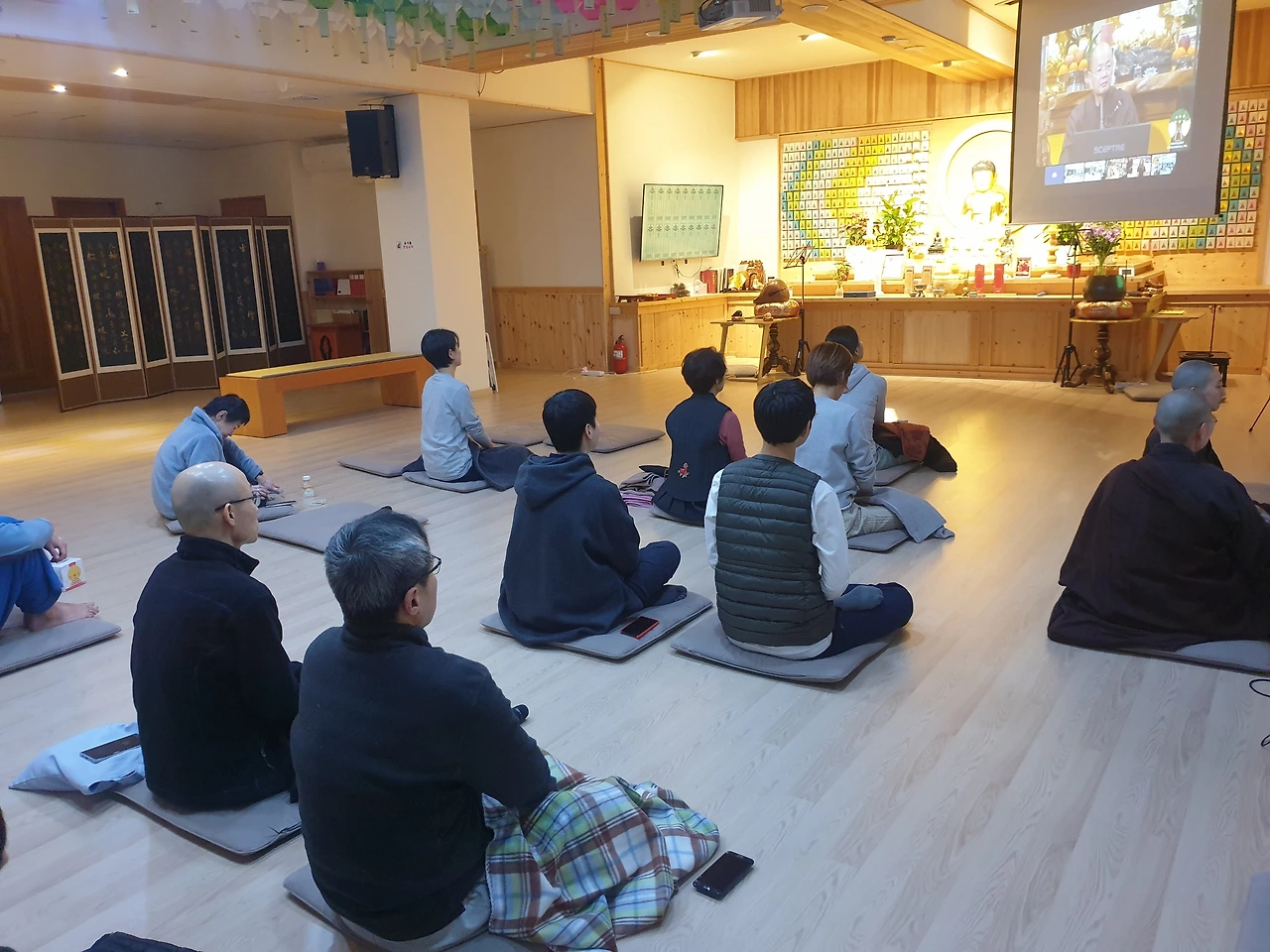 예불 후 점심을 맛나게 먹고... 12시 20분부터 영화 스님의 육조단경 강설을 들었습니다. 미국 위산사에 자주 와서 법문에 참여하고 있는 어떤 백인 남성분이 아주 진지하게 질문합니다. 거의 1년 가까이 유심히 관찰하고 법문듣고 그랬다고 말합니다. 이제 요가보다 선 수행이 자신에게 더 좋다고 느껴저서 요가를 버리고, 선 수행에 전념하기로 했다고 말합니다.