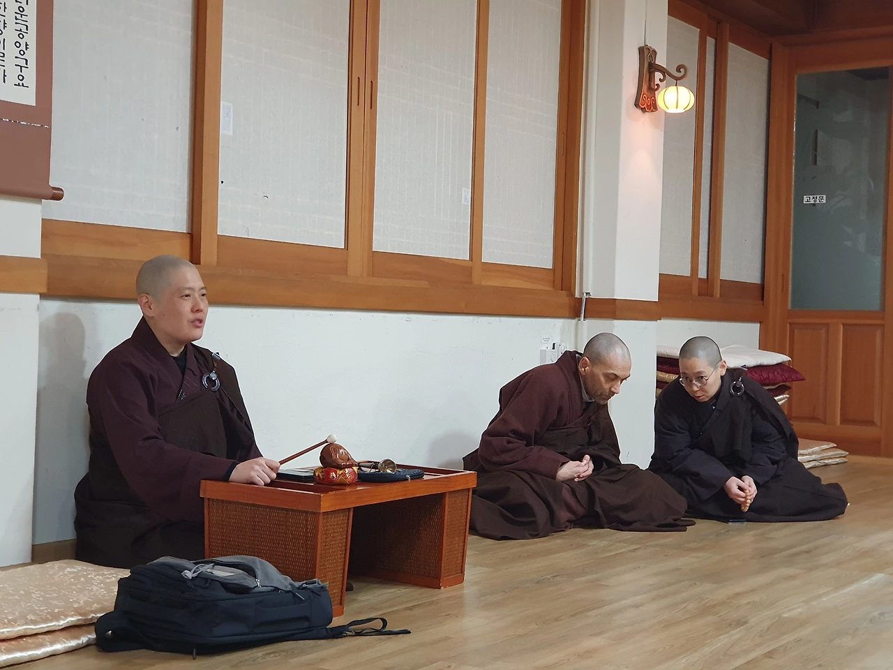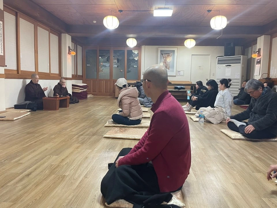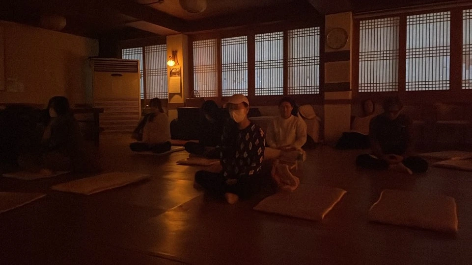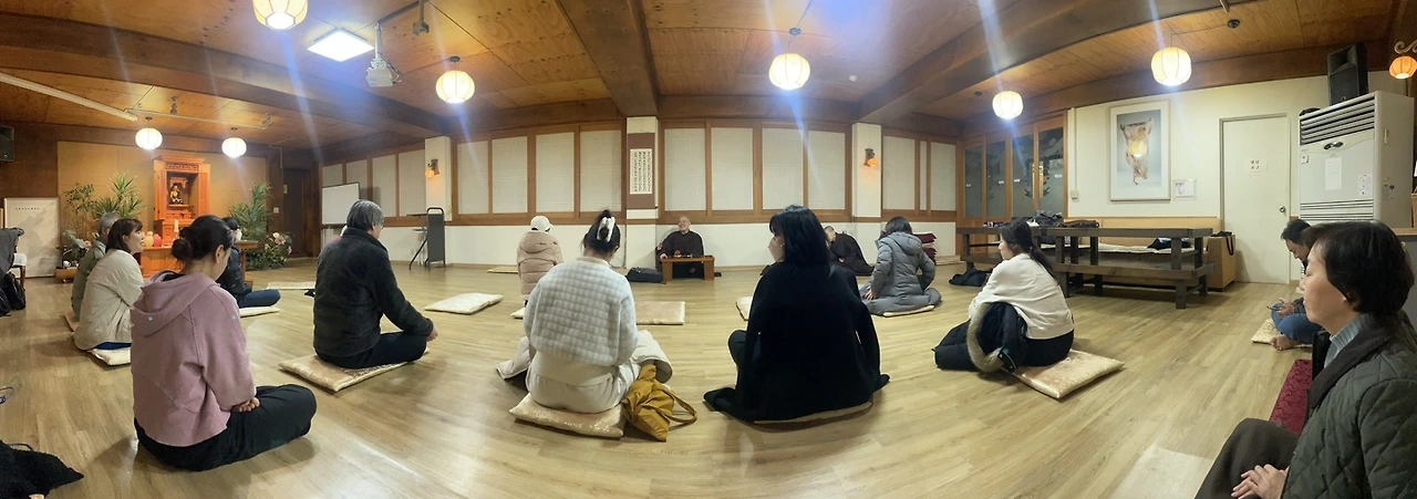 나이층도 다양하고, 처음 오신 분들도 있고, 보라선원에서 함께 수행하는 분들도 있습니다.... 특히 요가쌤이 몸도 풀어주고, 아주 친절하게 결가부좌 쉽게하는 방법을 설명해줬어요.