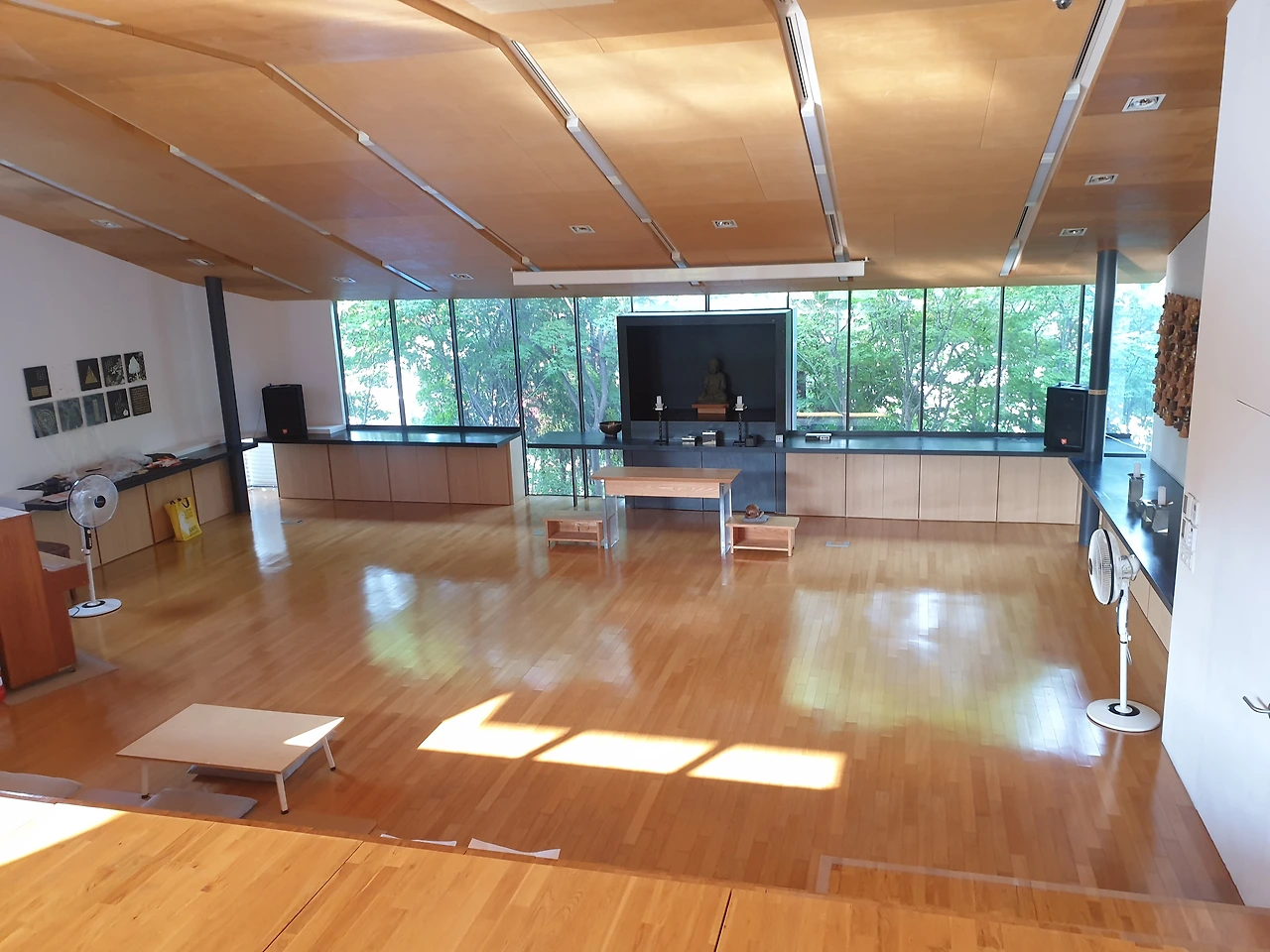 정목 스님이 가신 후에 공양간 바로 옆에 "붓다 홀"이라고 부르는 공간에 들어갔습니다. 유럽에 있는 명상 센터와 같이 매우 간결하고 감각이 있는 공간이었습니다. 이 공간도 기운이 너무 좋고 맑았습니다. 결가부좌를 틀고 앉아보니, 많은 사람들이 드나들지 않아서 그런지 집중하기 매우 좋았습니다. 저랑 같이 동행한 분들도 다 같이 결가부좌로 앉았습니다. 우리 모두 다리를 풀고 싶지 않았습니다. 그렇게 앉아 있다 보니 거의 밤이 다 되도록 앉아버렸습니다. 정각사에 간 덕분에 다 함께 결가부좌로 앉아서 집중할 수 있는 기회가 있었습니다. 도심 도량이라 오후 6시면 문을 닫기 때문에, 동행한 분들도 일반인은 보통 할 수 없는 특별한 경험을 할 수 있었습니다.
