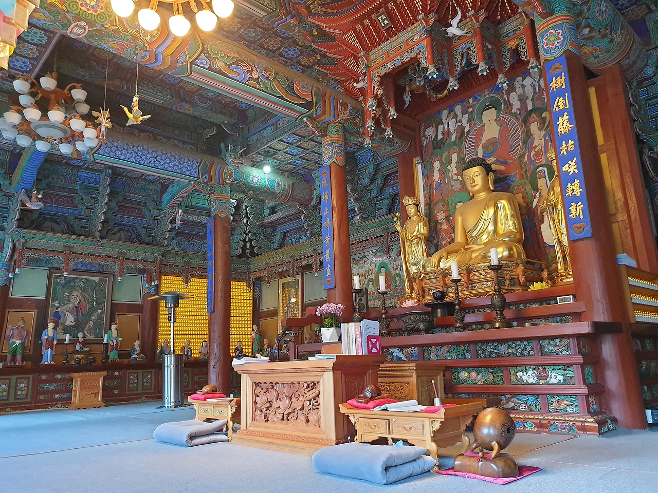 법당에서 잠시 앉아서 좌선도 했어요. 마침 일수 스님이 저희를 초대해주셔서 차를 내주셨어요. 그래서 더욱 좋았습니다. 일수 스님은 엄청 어른 스님이신데도 엄청 시원시원하시고, 자상하게 해주셔서 학생들이 모두 좋아했습니다.