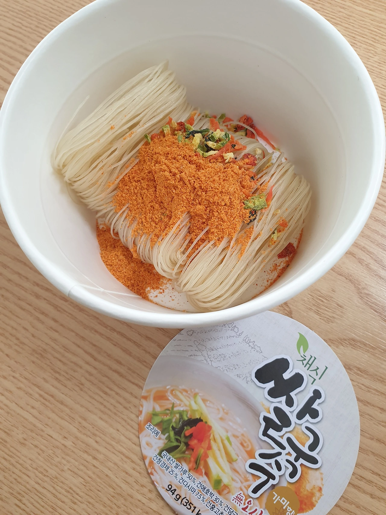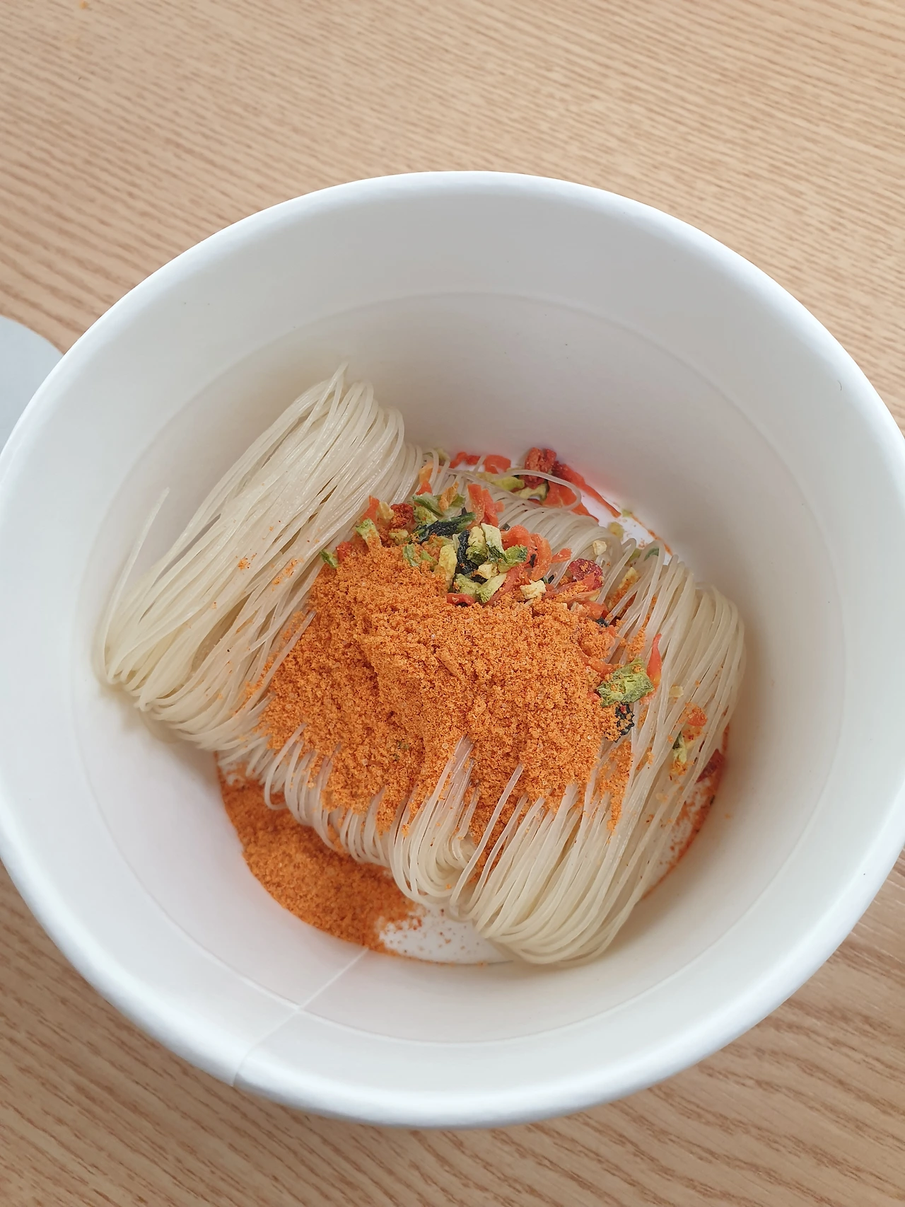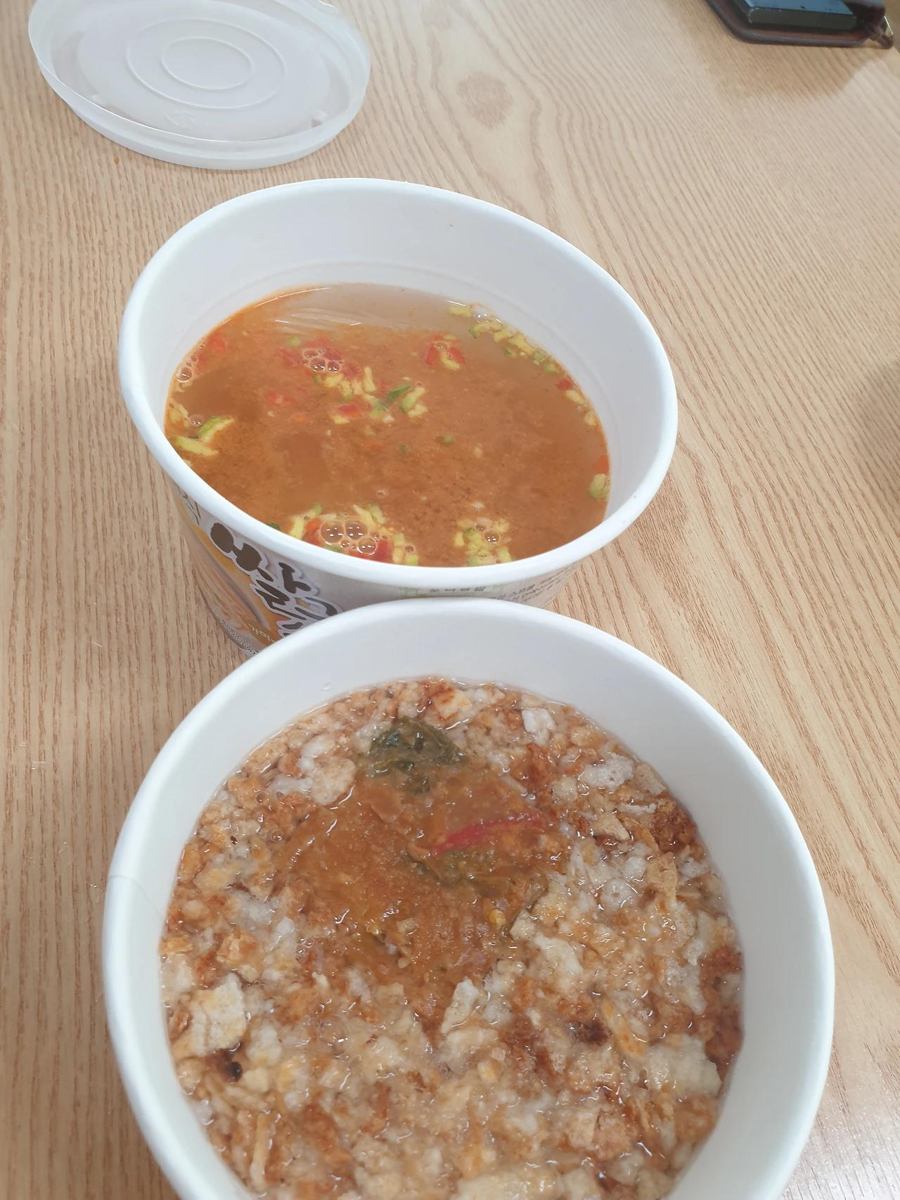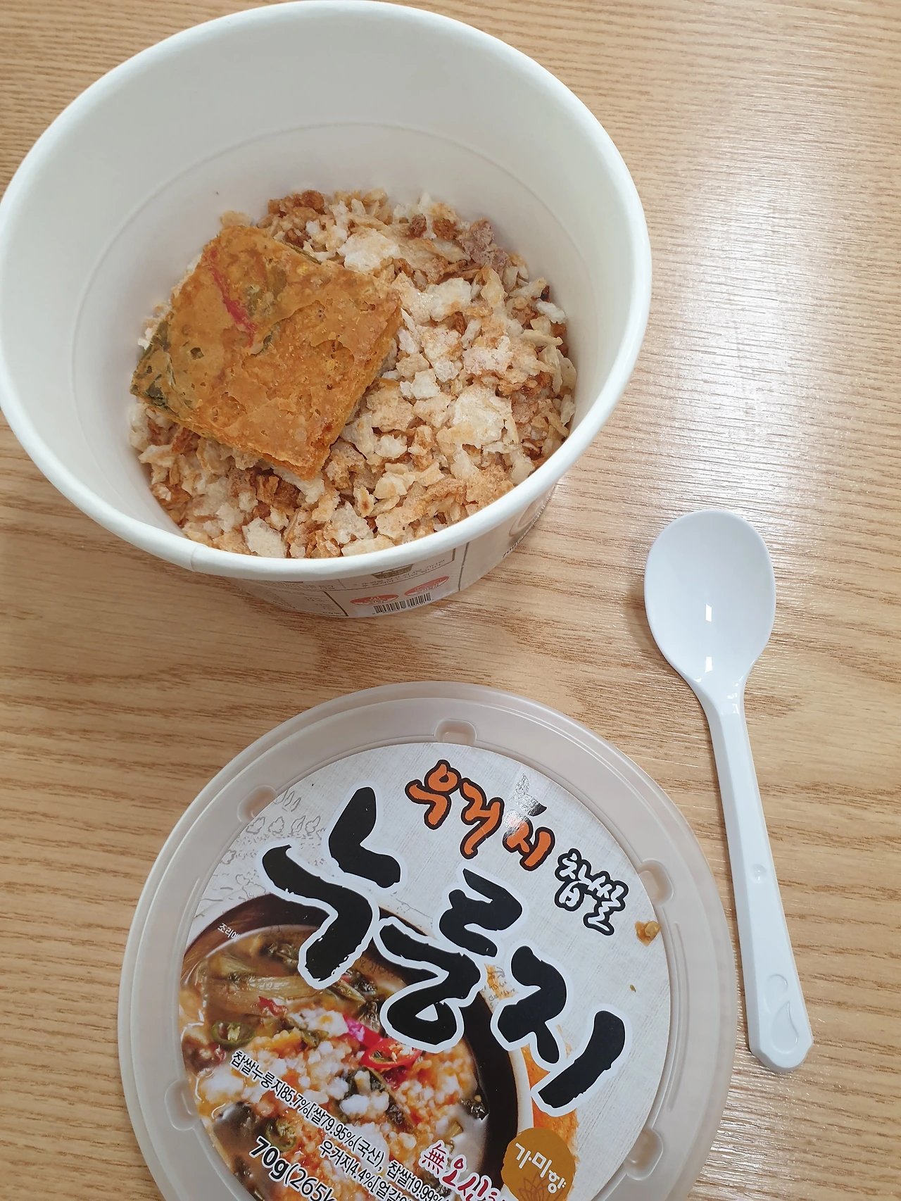저는 개인적으로 쌀국수보다 누룽지를 좋아하는데, 누룽지는 된장 블록을 넣고 뜨거운 물을 부으면 약간 얼큰한 맛이 나서 좋습니다. 그래서 개운하고 느끼하지 않아요.