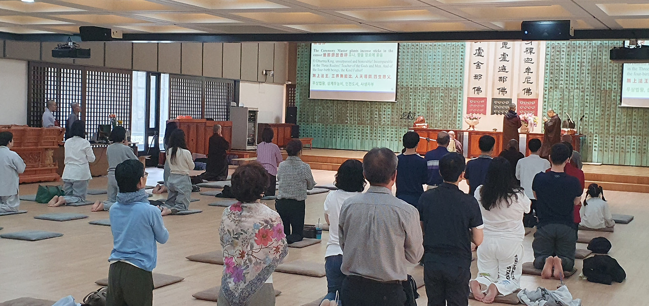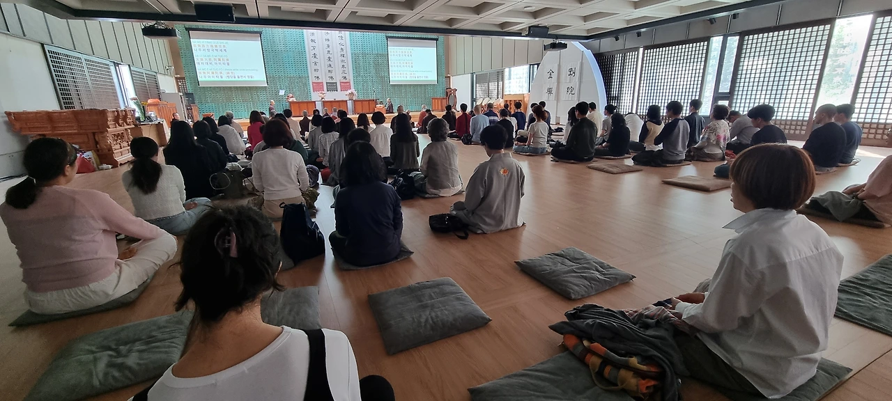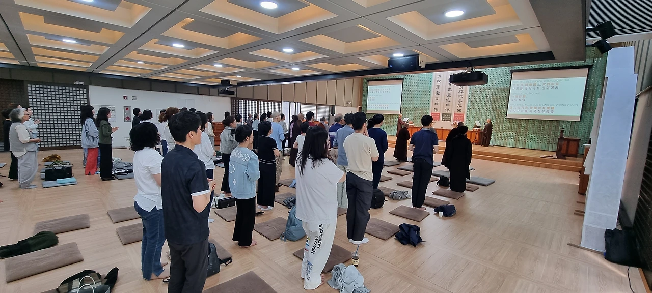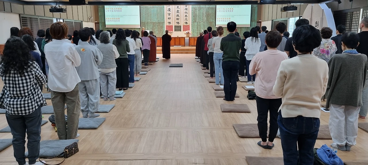 오늘은 미국 영화선사의 방한 마지막 법회가 열렸습니다. 수서역 근방에 위치한 탄허박물관에서 귀의오계식과 선명상의 기초로 법회를 시작했습니다. 귀의오계식에 이미 귀의 받은 분들도 꽤 많이 참여했습니다.
