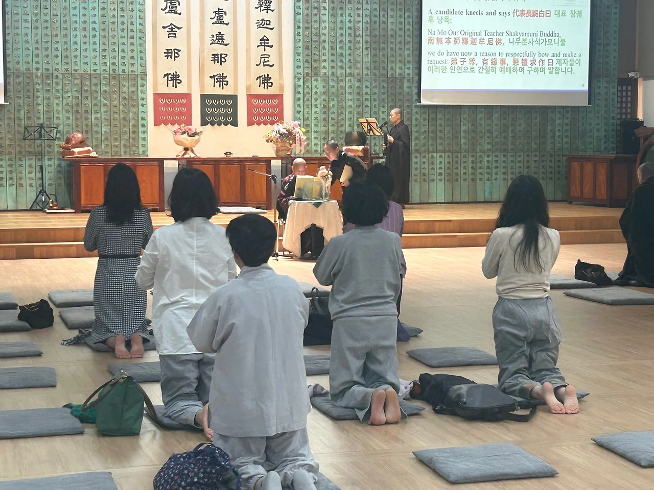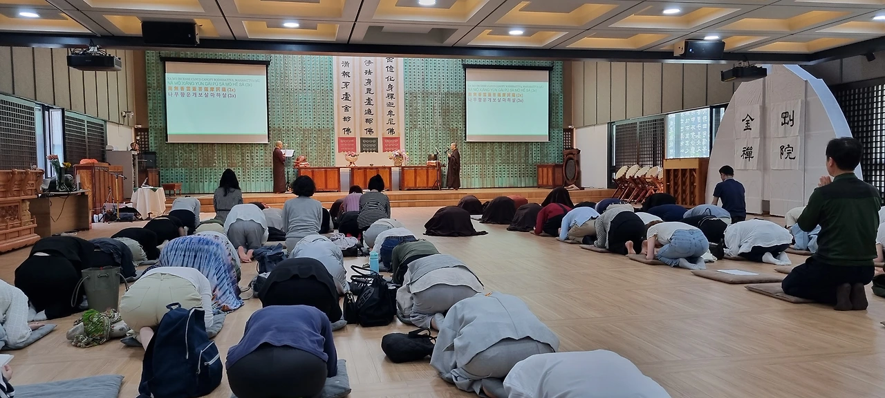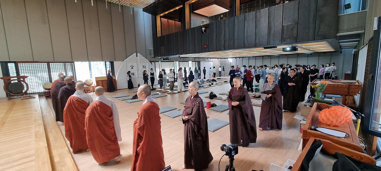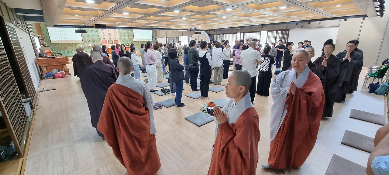 오늘은 미국 영화선사의 방한 마지막 법회가 열렸습니다. 수서역 근방에 위치한 탄허박물관에서 귀의오계식과 선명상의 기초로 법회를 시작했습니다. 귀의오계식에 이미 귀의 받은 분들도 꽤 많이 참여했습니다.