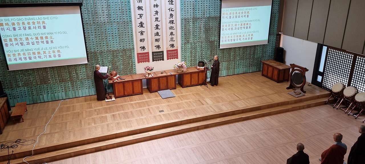 어제는 선명상 법회였다면 오늘은 정토불교를 실제로 수행해보고 배우는 날입니다. 정토법회는 향찬으로 시작해서 아미타경 독송, 아미타불 염불로 이어집니다.