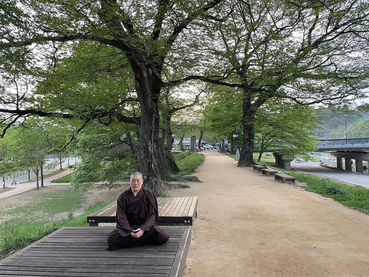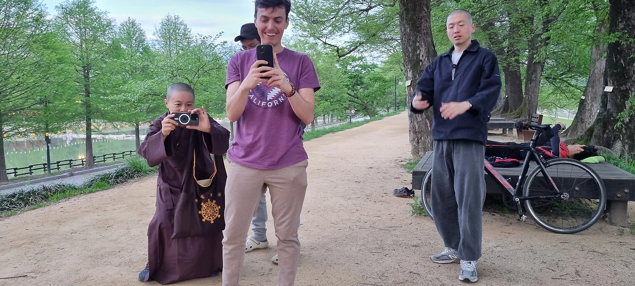 유럽 선 명상 투어 포스터 만드는데 사용할 사진이 필요하다면서, 다들 제 사진을 찍고 있어요~