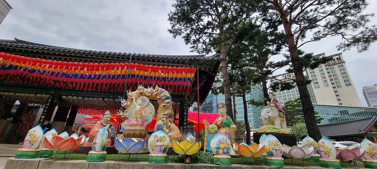 부처님 오신날이 다음달이라, 조계사도 연등으로 장엄되어 있었어요.