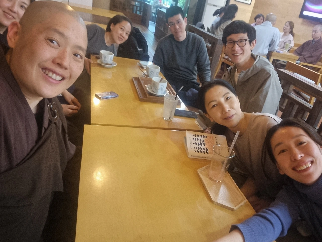 일단 조계사 옆에 있는 나무카페에서 모였어요. 결가부좌도 하고, 이야기도 하고, 호박식혜가 냠냠 넘 맛있어요. 4월인데도 날씨는 여름 같아서 얼음동동 띄운 식혜가 별미였습니다.