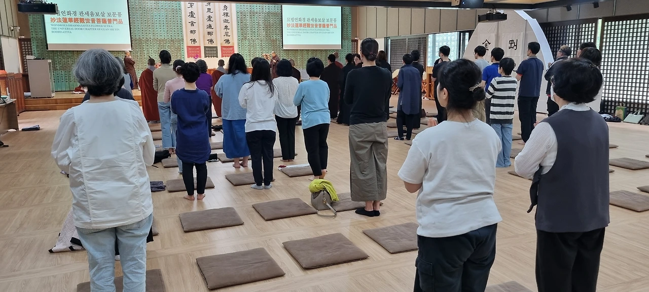 이 법회는 미국 위앙종의 한국 도량의 모든 대중 스님들이 모여서 보문품을 독송하고, 선명상하는 시간입니다. 게다가 보문품 독송뿐 아니라 다라니, 관세음보살님의 12가지 대서원, 관세음보살님을 찬탄하는 게송 및 관세음보살님의 명호를 염불도 함께 할 수 있습니다. 이렇게 염불법의 기술도 스님들로부터 배울 수 있는 법회입니다. 이 법회는 누구나 참여할 수 있고, 참여비는 무료입니다.