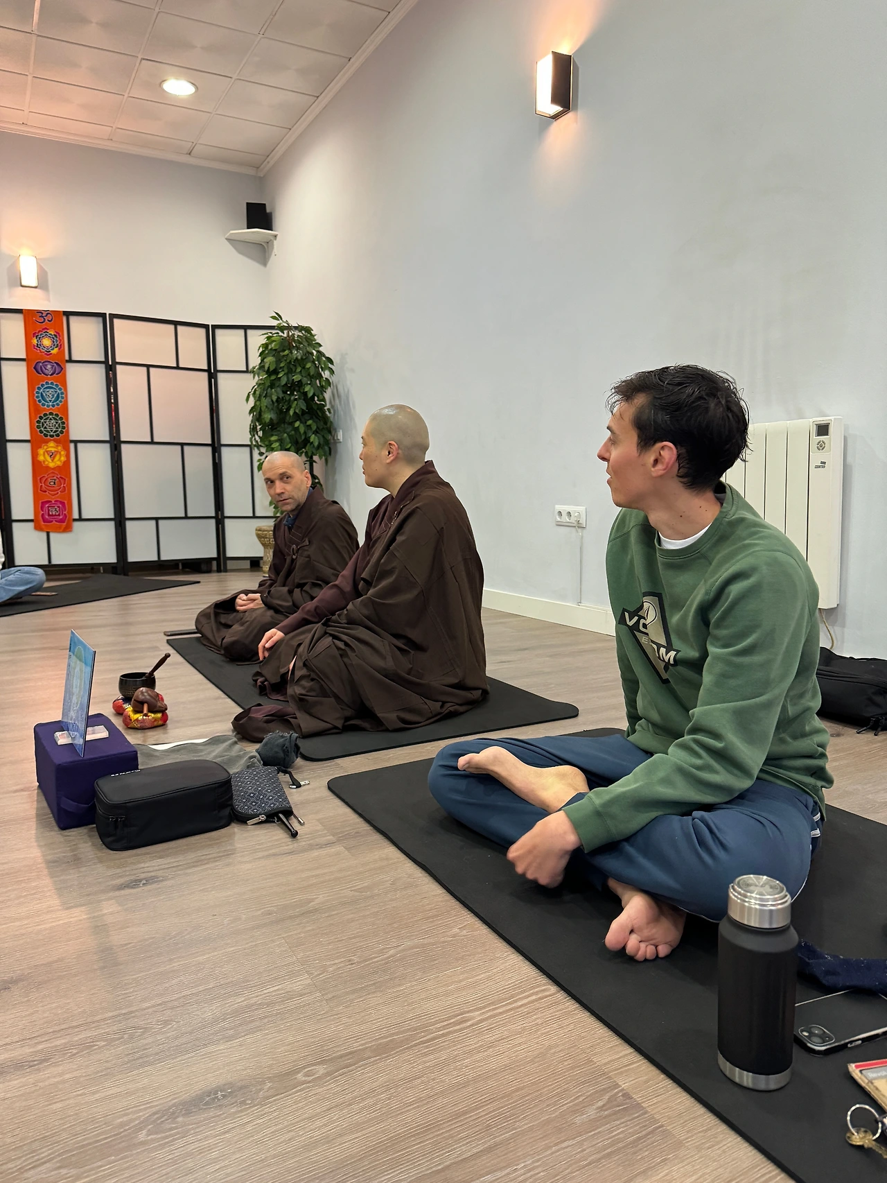 오늘은 스페인 마드리드에서 3번째 선 명상 수업을 열었습니다. 3일 연속으로 찾아온 사람들도 몇 분 있었고, 어제 살라다나에 참여했던 학생들도 왔습니다. 어제에 이어서 선 명상에 관한 소개도 추가로 했고, 어제와 마찬가지로 30분간 그룹 좌선도 했습니다. 그룹 좌선 후에는 잠깐 휴식시간을 갖고, 한국에서 가져온 양갱을 나눠줬어요. 봉은사 출신 양갱 먹는 시간~ 사람들이 매우 좋아하더군요!