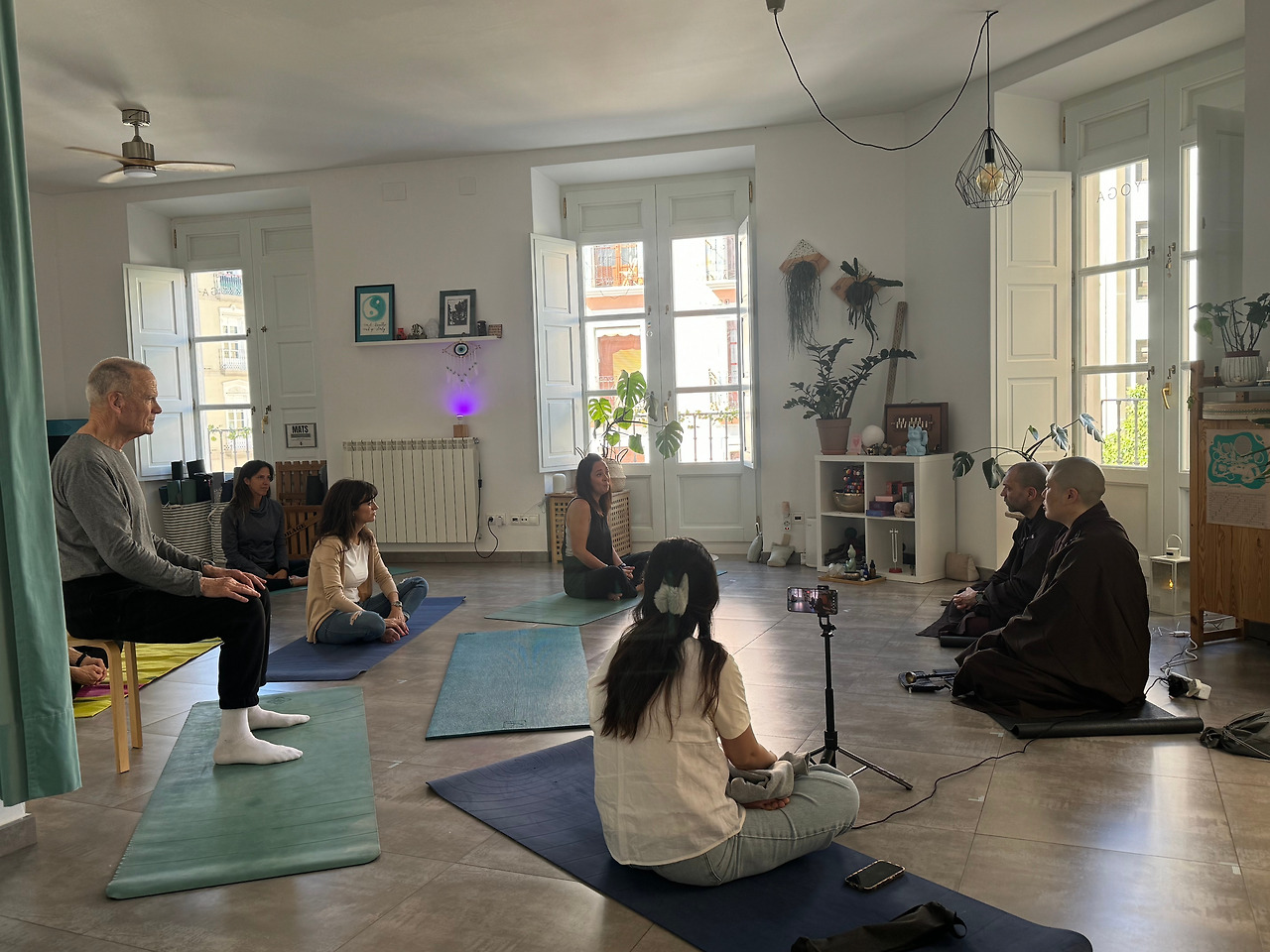 숫자는 적었지만 스페인의 작은 도시에 스님이 2명이나 와서 명상 지도를 해주니 너무 좋아했고, 아주 진심을 다해서 참여했습니다. 불행하게도 수업은 2시간밖에 할 수 없었어요. 이미 저녁에 요가 수업이 있기 때문입니다.
