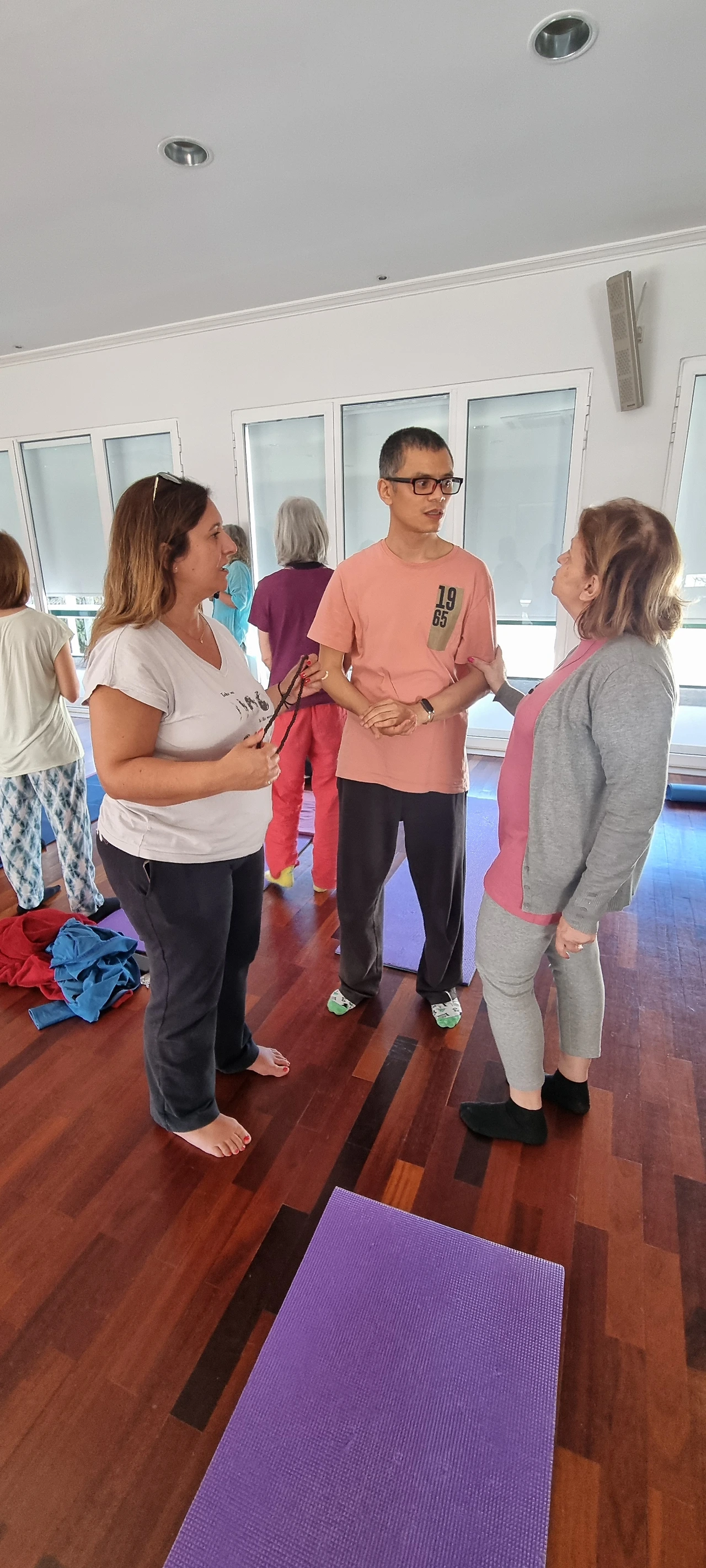 중간 중간 도착한 학생들은 봉사자들이 돌아가면서 기초 자세 지도를 해줍니다. 독일어, 프랑스어, 스페인어, 포르투갈어, 영어, 한국어 등 여러 언어로 지도를 해줄 수 있는 아주 좋은 프로그램이 되었어요.