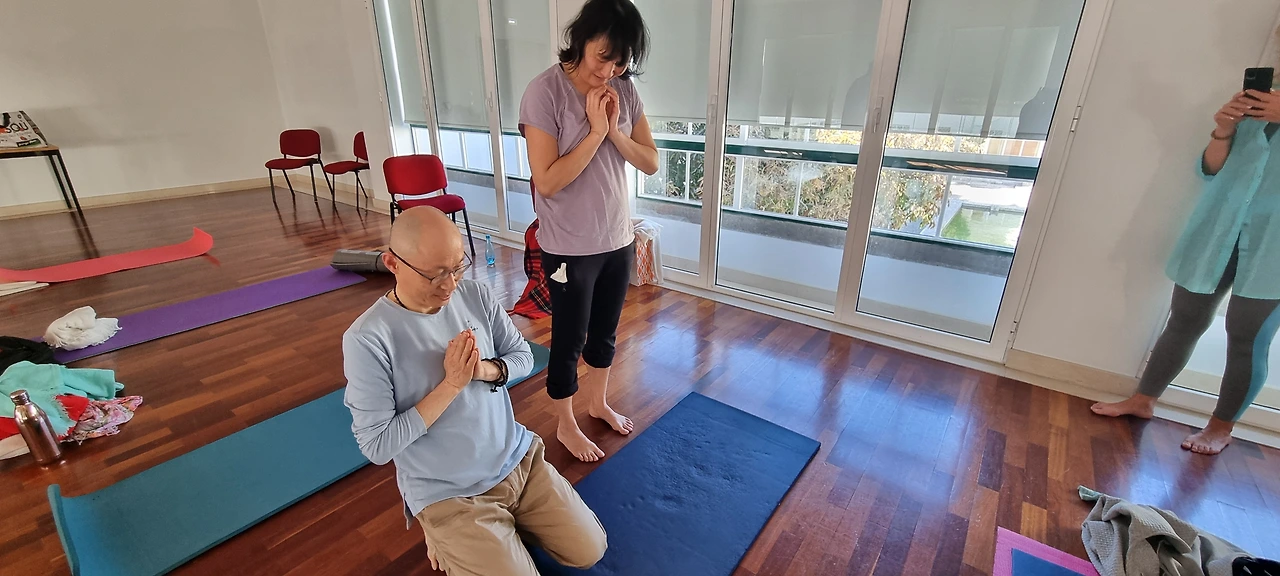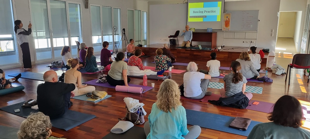그러고 오후에는 아미타불 염불도 같이 해보았고, 그런 후 박선생님이 절 수행을 지도했습니다. 정말 신기한 것은 유럽사람들이 명상보다 염불이나 절 수행에 더욱 큰 관심을 보이고 적극 참여했다는 점입니다.