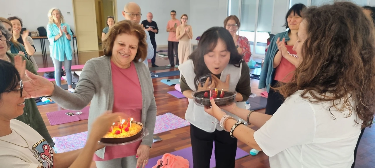 점심 식사 후 다르마톡 후 염불, 명상 등을 진행하고, 요가 스트래칭을 하기 전 티 타임 및 깜짝 생일 파뤼~