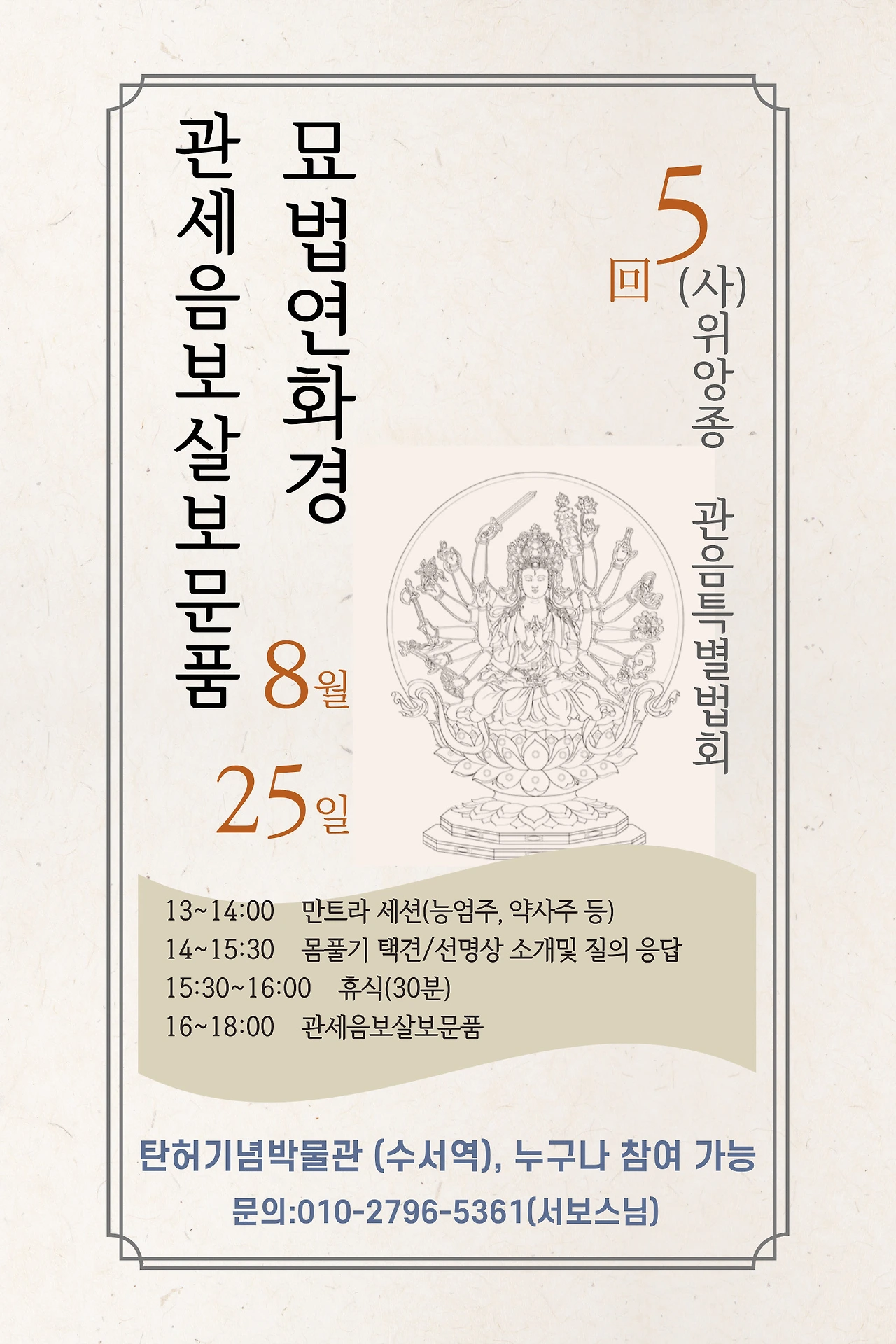 다음 법회(제5회)는 8월 25일 일요일에 열립니다.